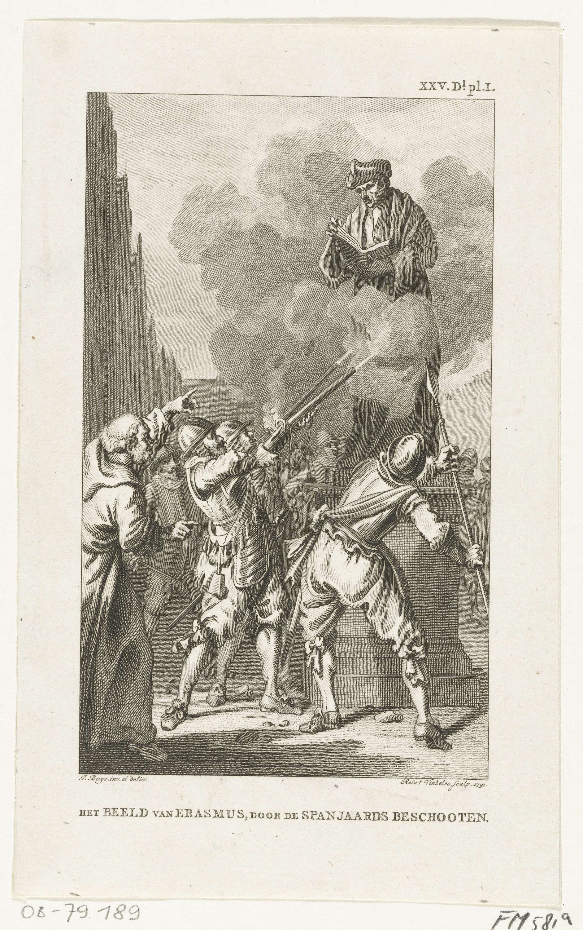 Spaanse soldaten beschieten het beeld van Erasmus, 1572