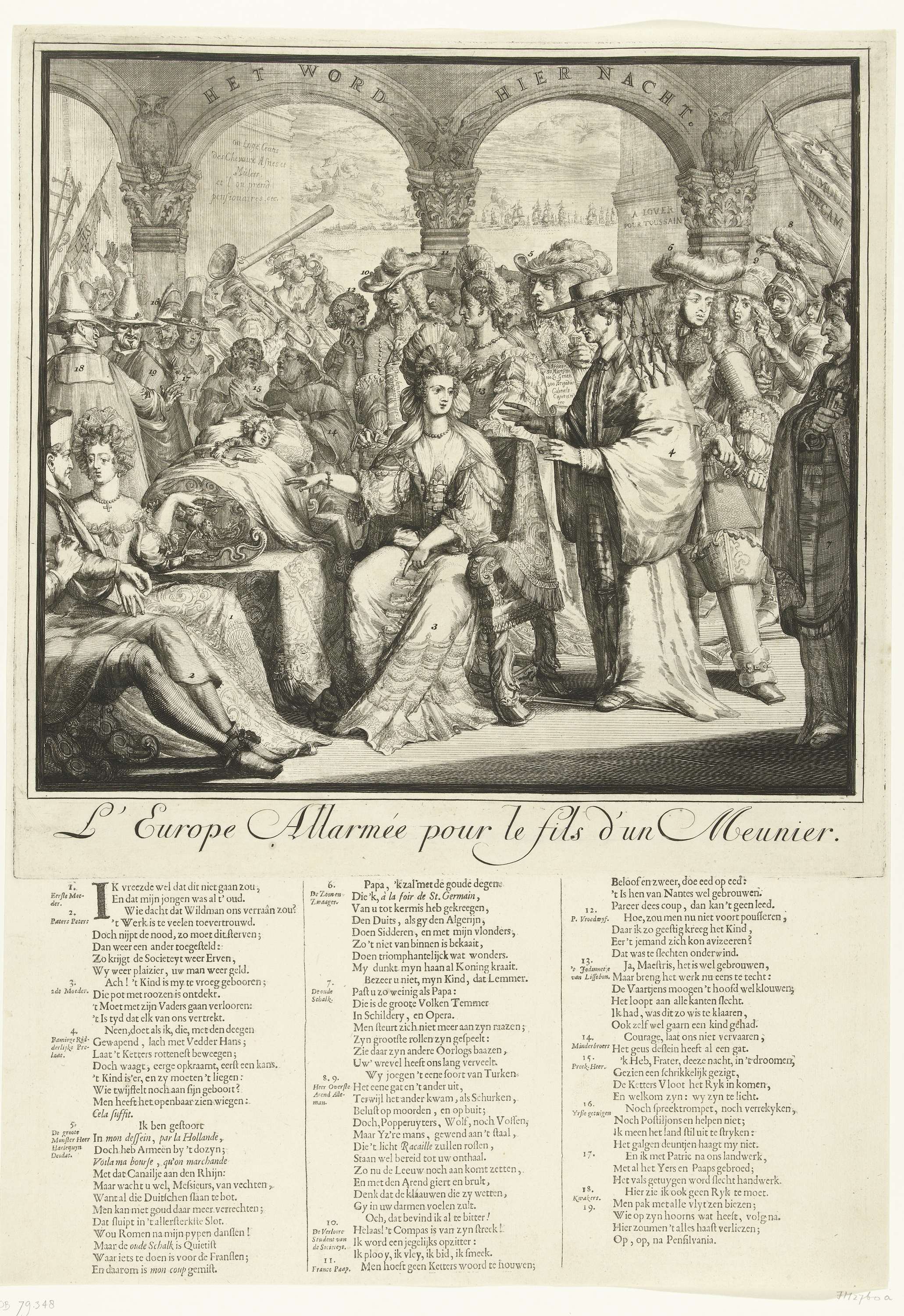 Spotprent op het mislukte plan met het ondergeschoven kind, 1689