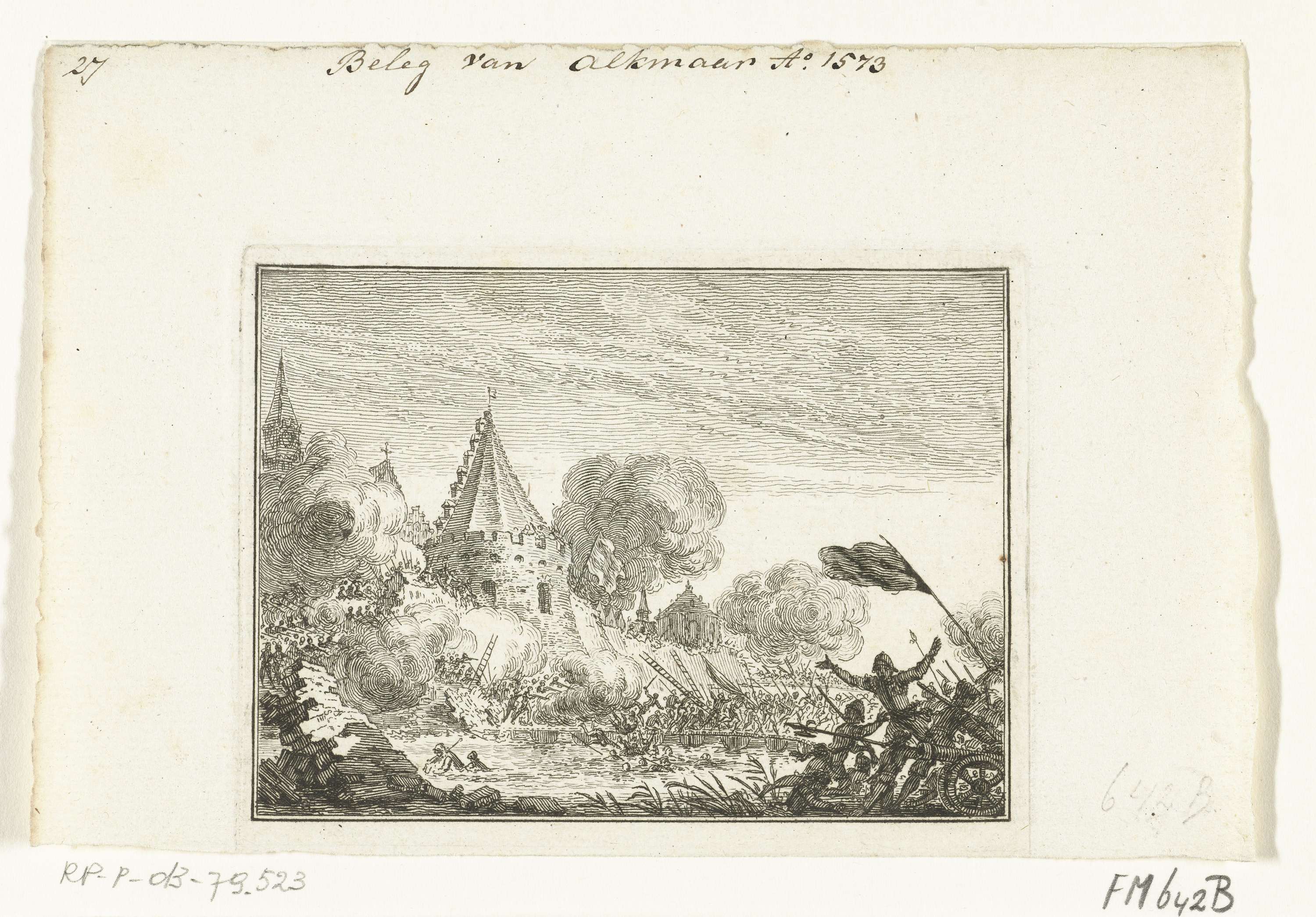 Voorstelling van het bestormen van de stadsmuren tijdens het beleg van Alkmaar door de Spanjaarden, 1573.
