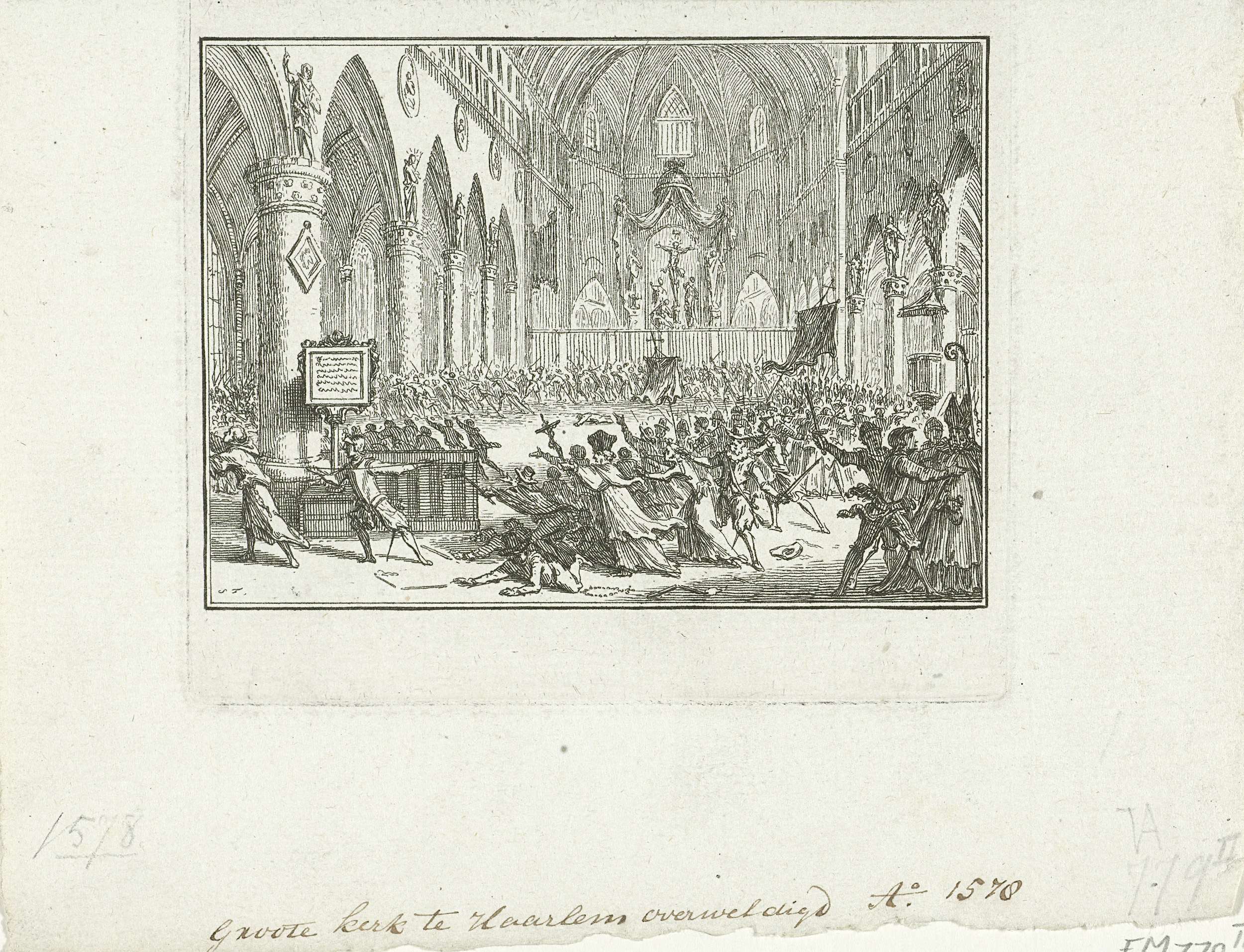 De Sint-Bavokerk in Haarlem bestormd door protestanten, 1578