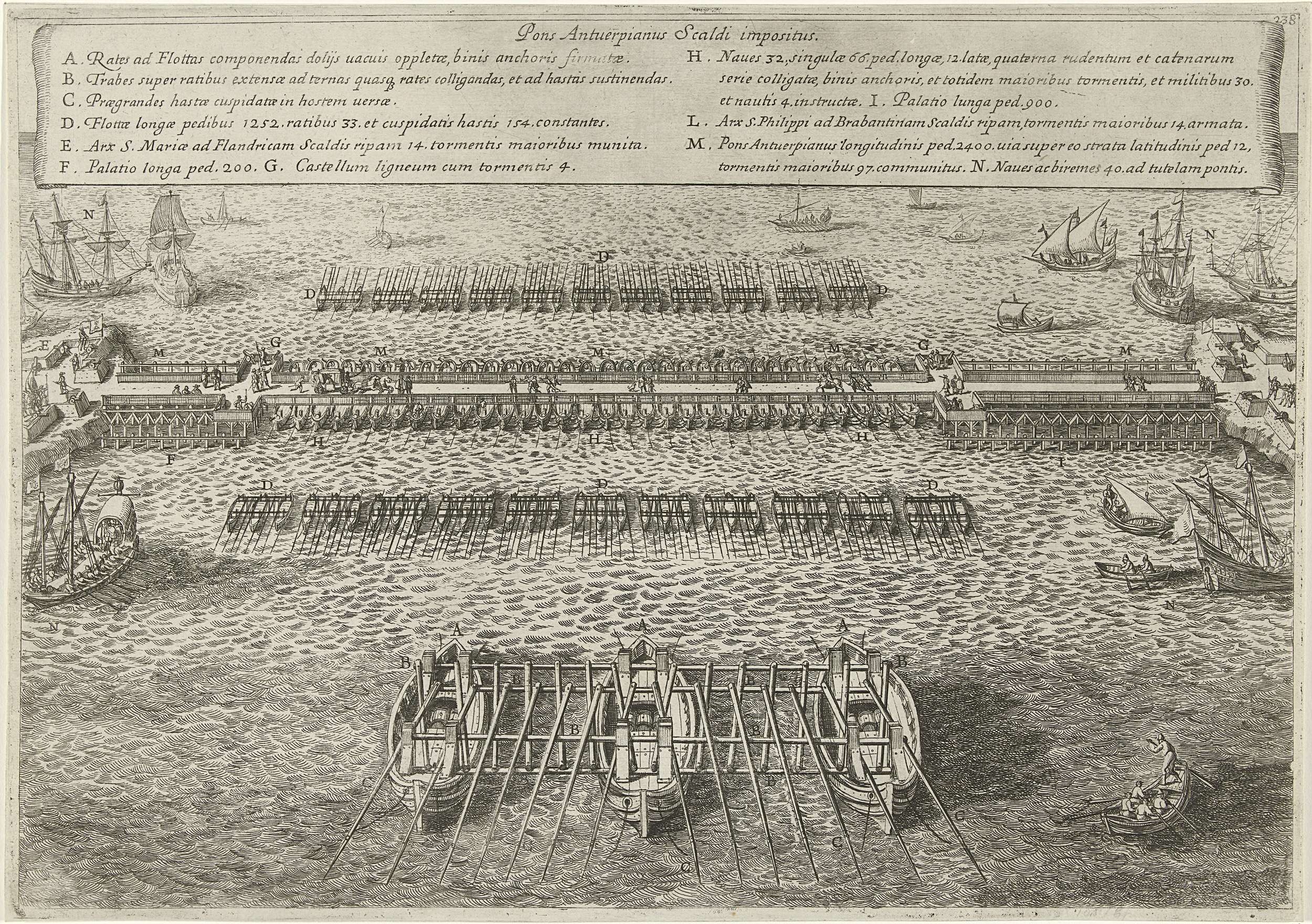 De schipbrug aangelegd door de hertog van Parma, 1585