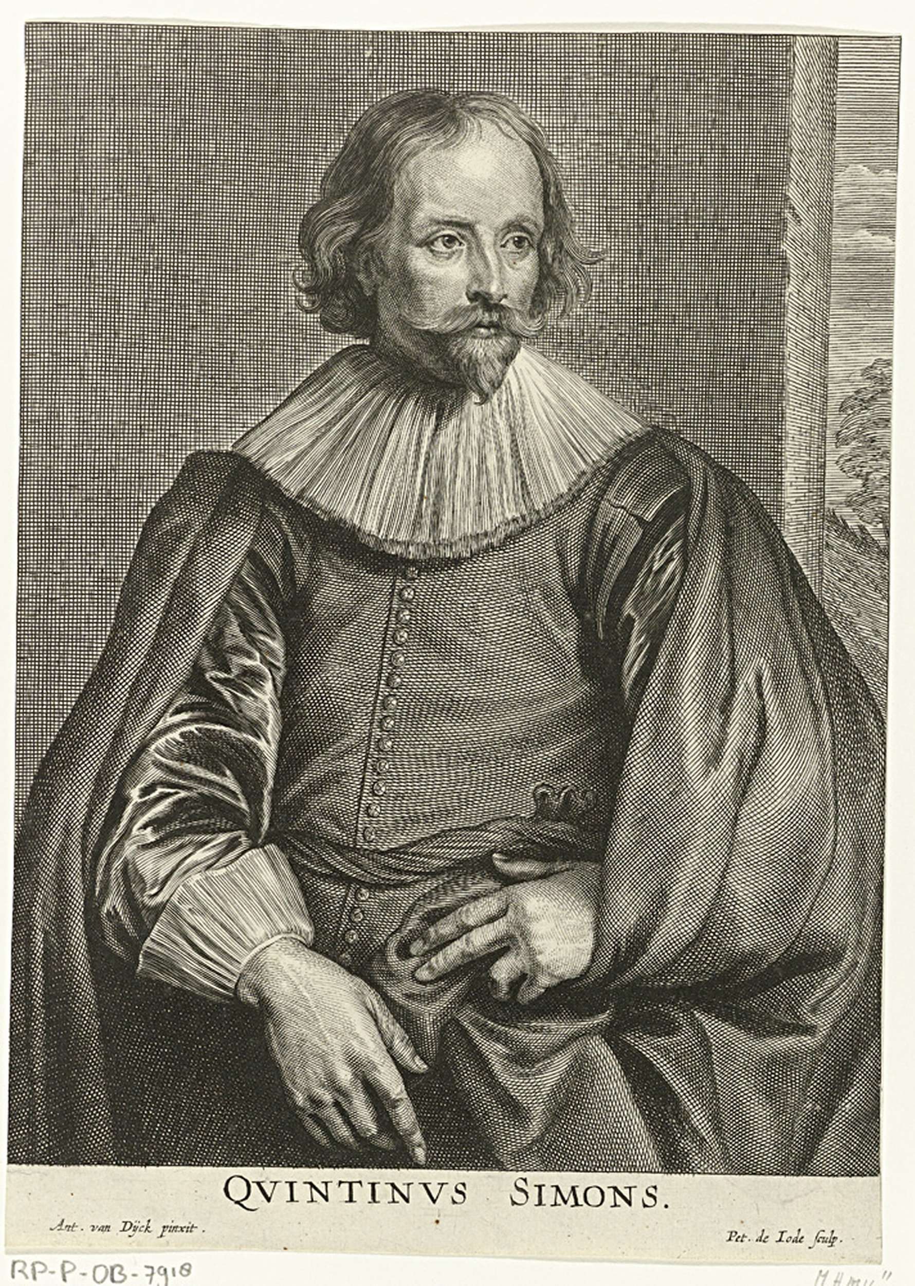 Portret van Quintijn Simons, ten halven lijve. In de marge de naam van de geportretteerde.