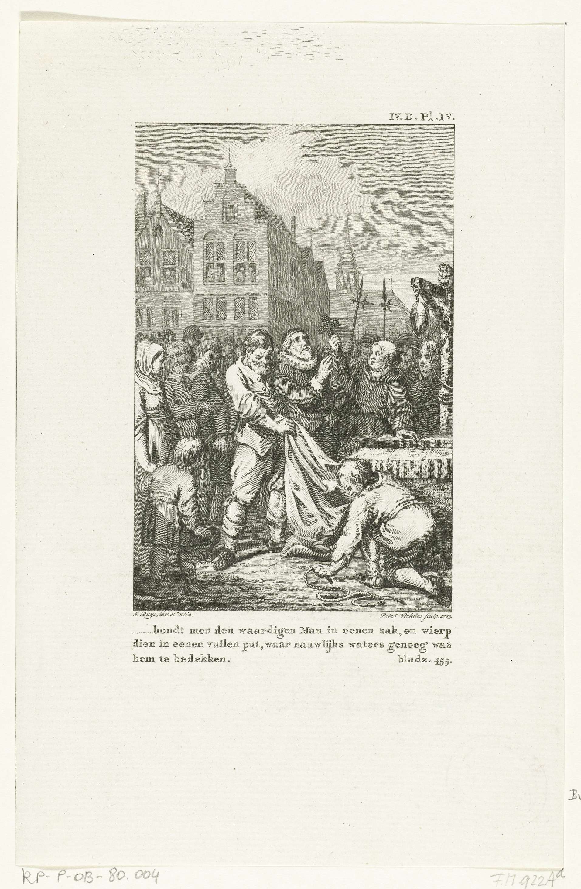 Predikant Johannes Florianus te Brussel als ketter in een zak gebonden en in een put geworpen, 1585