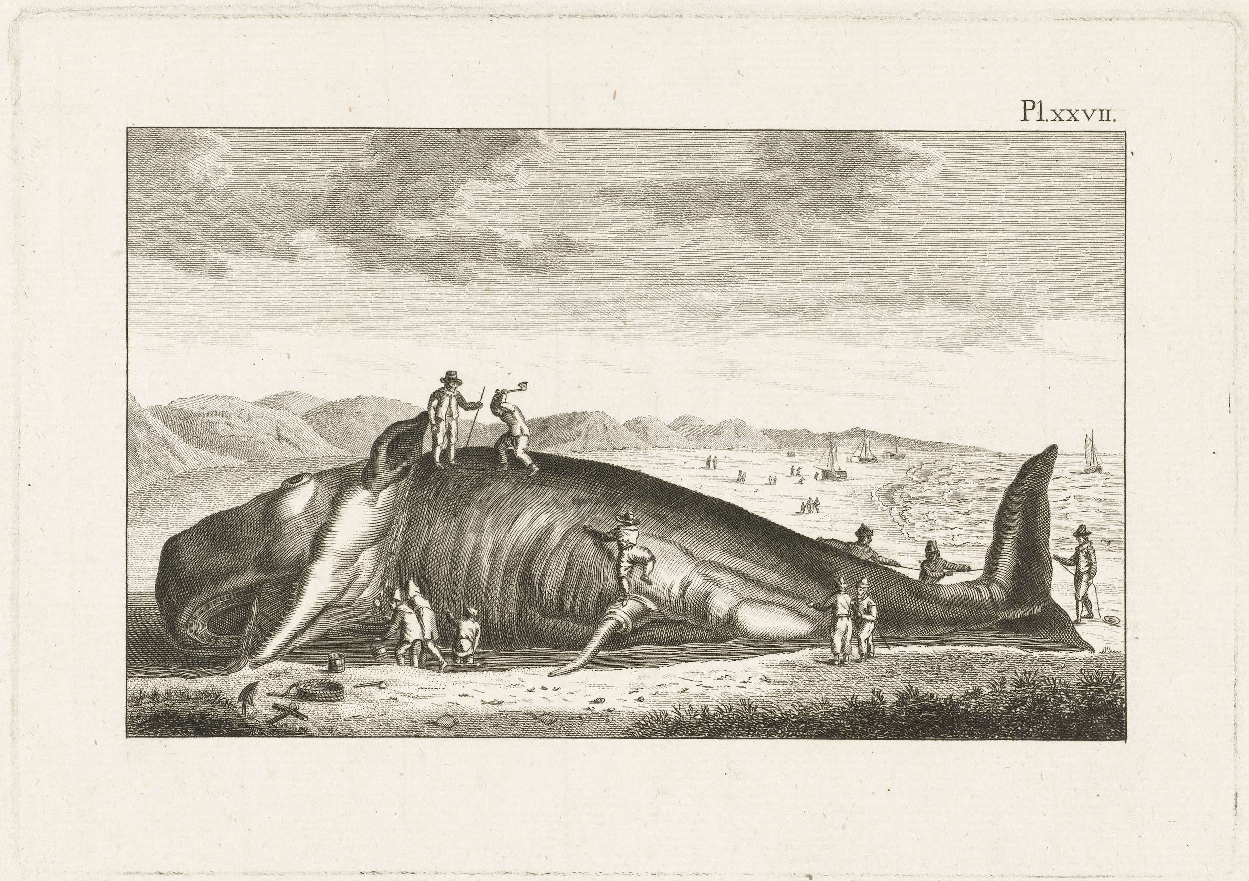De walvis (potvis) gestrand op 2 februari 1598 op het strand bij Berckhey tussen Katwijk en Scheveningen.