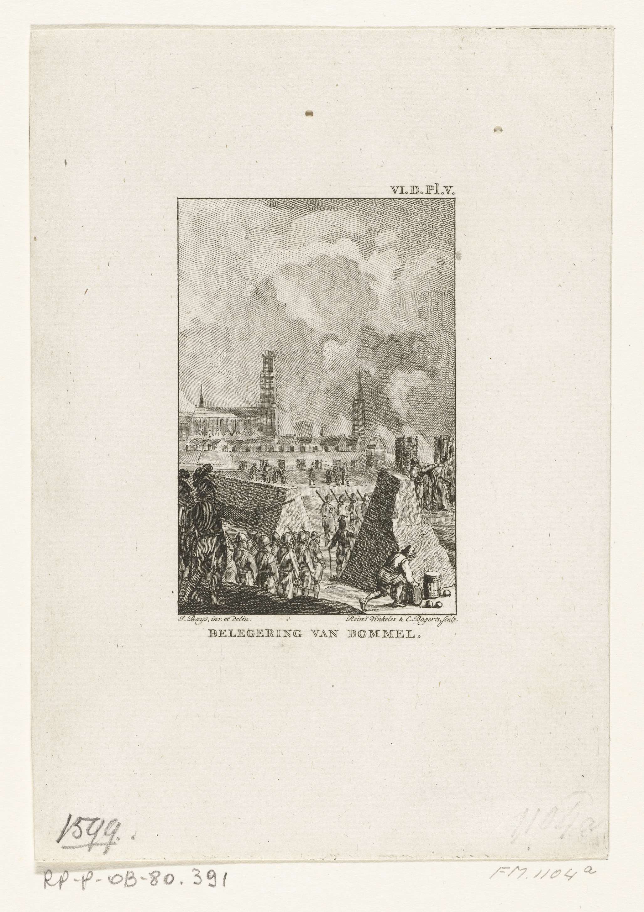 De belegering van de stad Zaltbommel door het Spaanse leger onder Mendoza en verdedigd door het Staatse leger onder Maurits, mei-juni 1599. Gezien vanuit de stellingen van de belegeraars.
