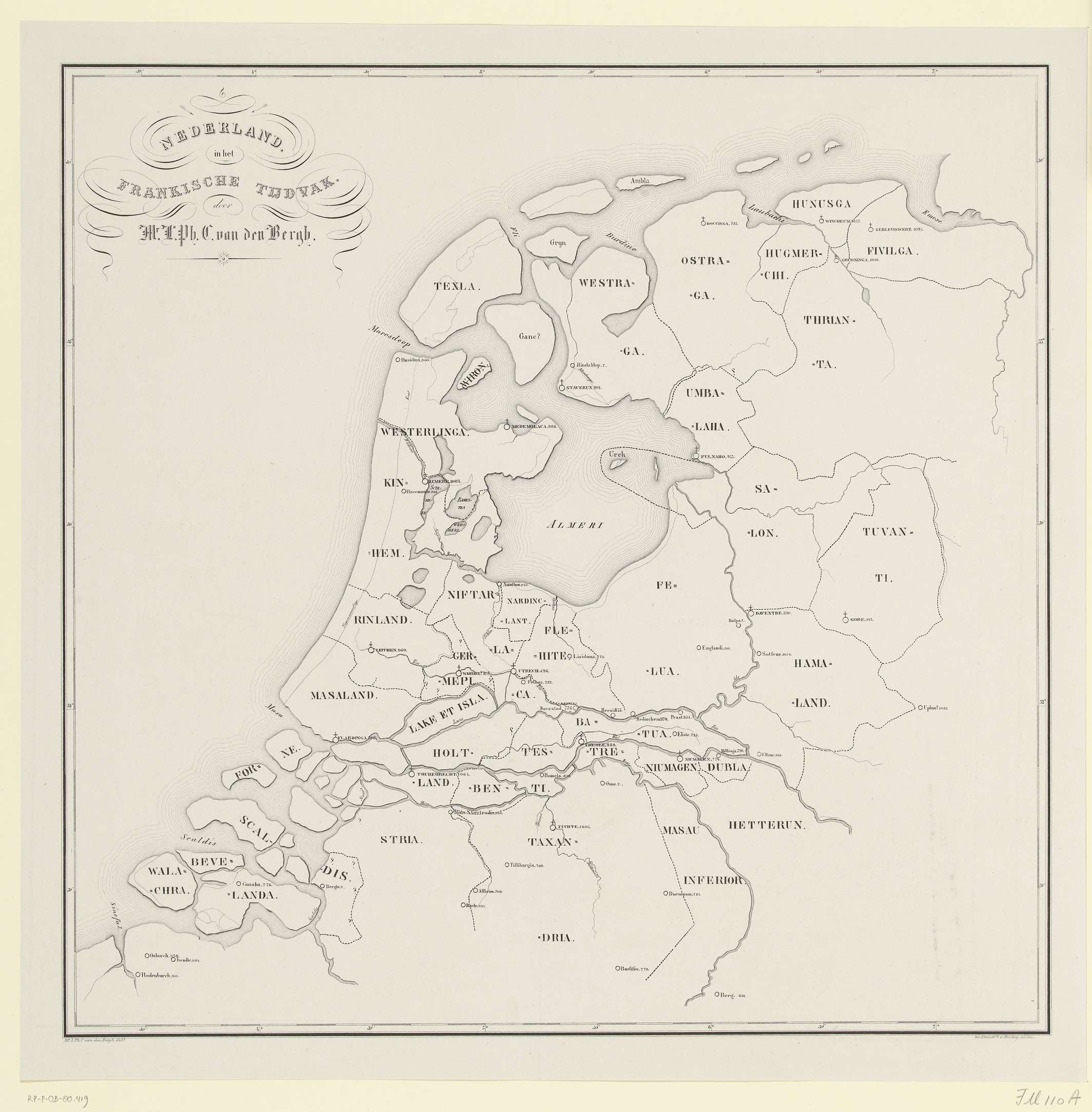 Kaart van Nederland in de Frankische tijd