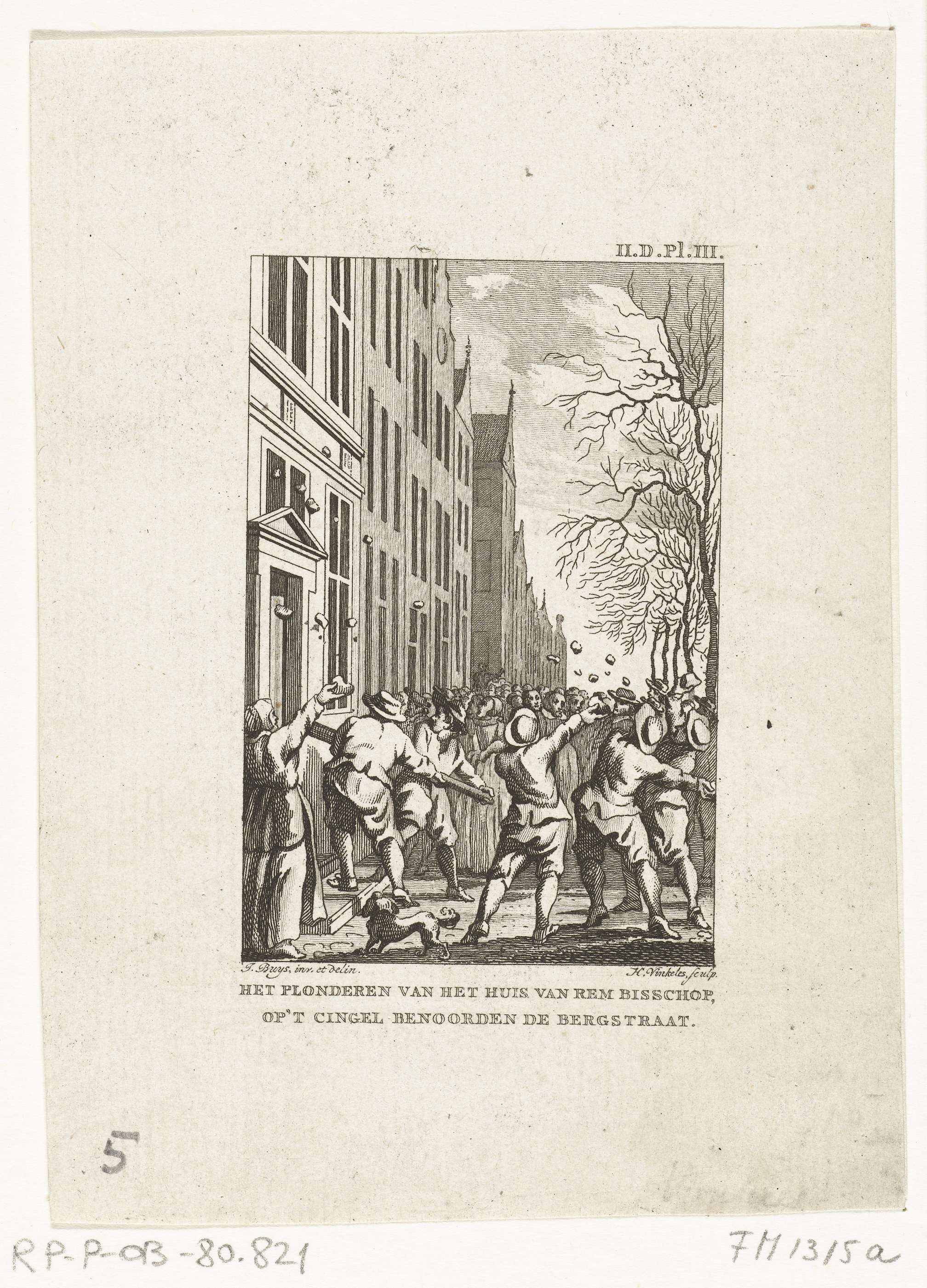 Plundering van het huis van Rem Egbertsz. Bisschop (Episcopius), een broer van de remonstrantse theoloog Simon Episcopius, aan het Singel te Amsterdam, door contraremonstrantse relschoppers, 19 februari 1617.