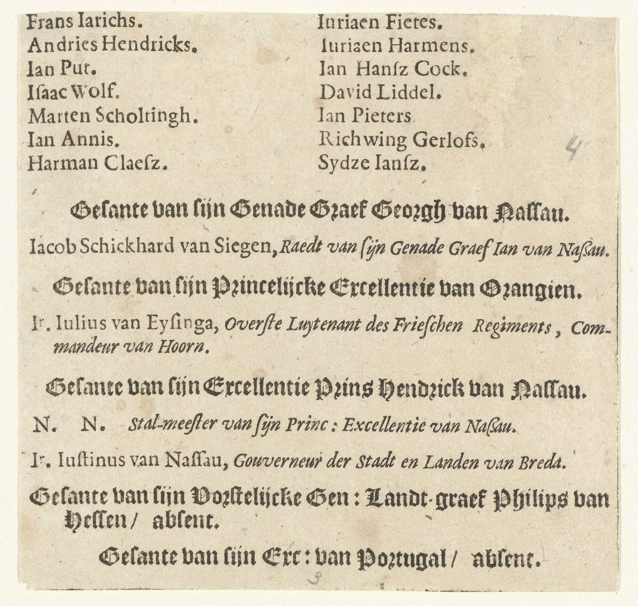 Tekstblad bij de begrafenis van Willem Lodewijk, graaf van Nassau, in de Grote Kerk te Leeuwarden op 13 juli 1620. Beschrijving van de begrafenis en de deelnemers aan de begrafenisstoet, bedrukt op één zijde.