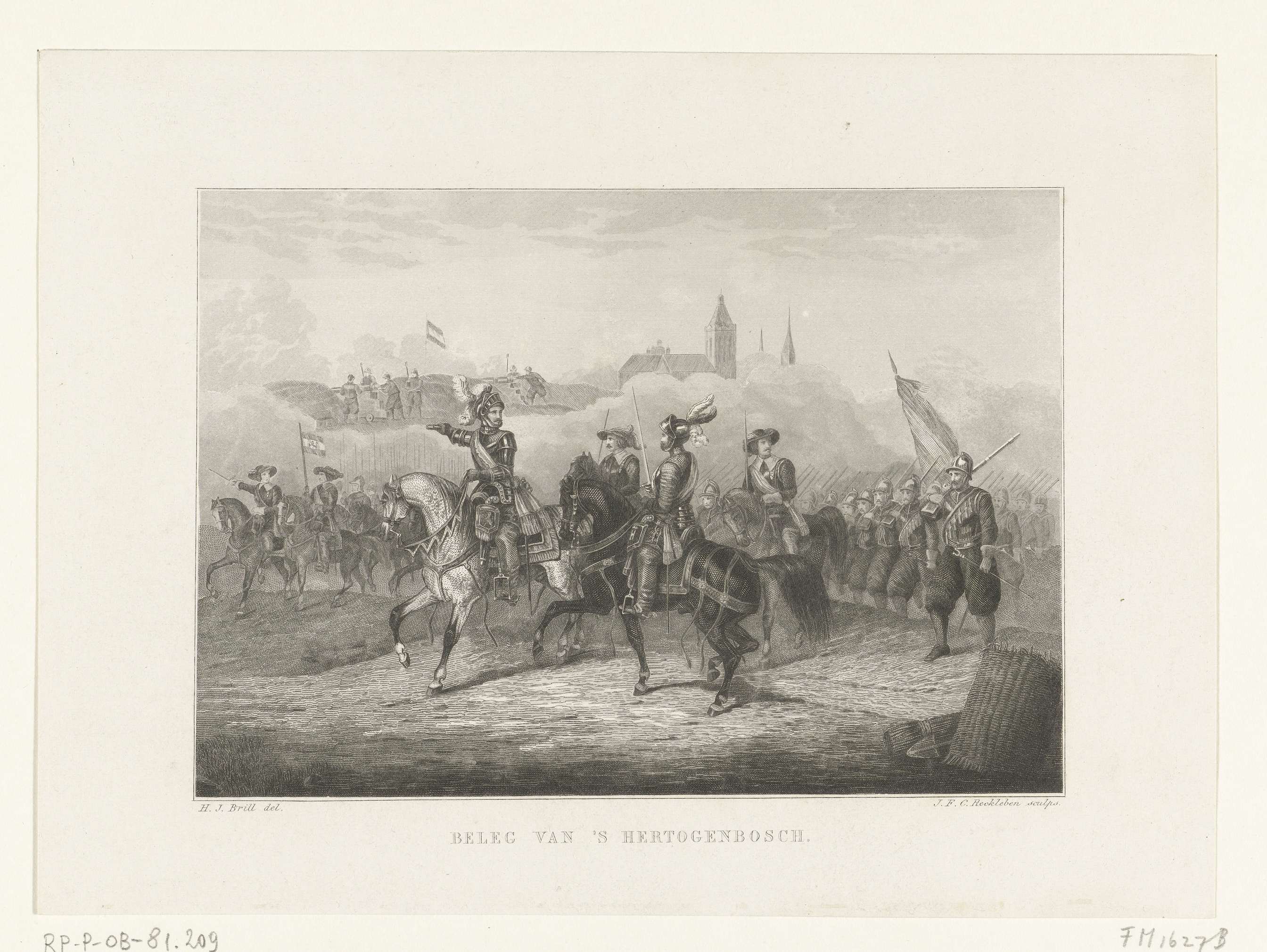 Stadhouder Frederik Hendrik bij het beleg van Den Bosch door het Staatse leger, van 1 mei tot 17 september 1629. De prins te paard tussen de troepen.