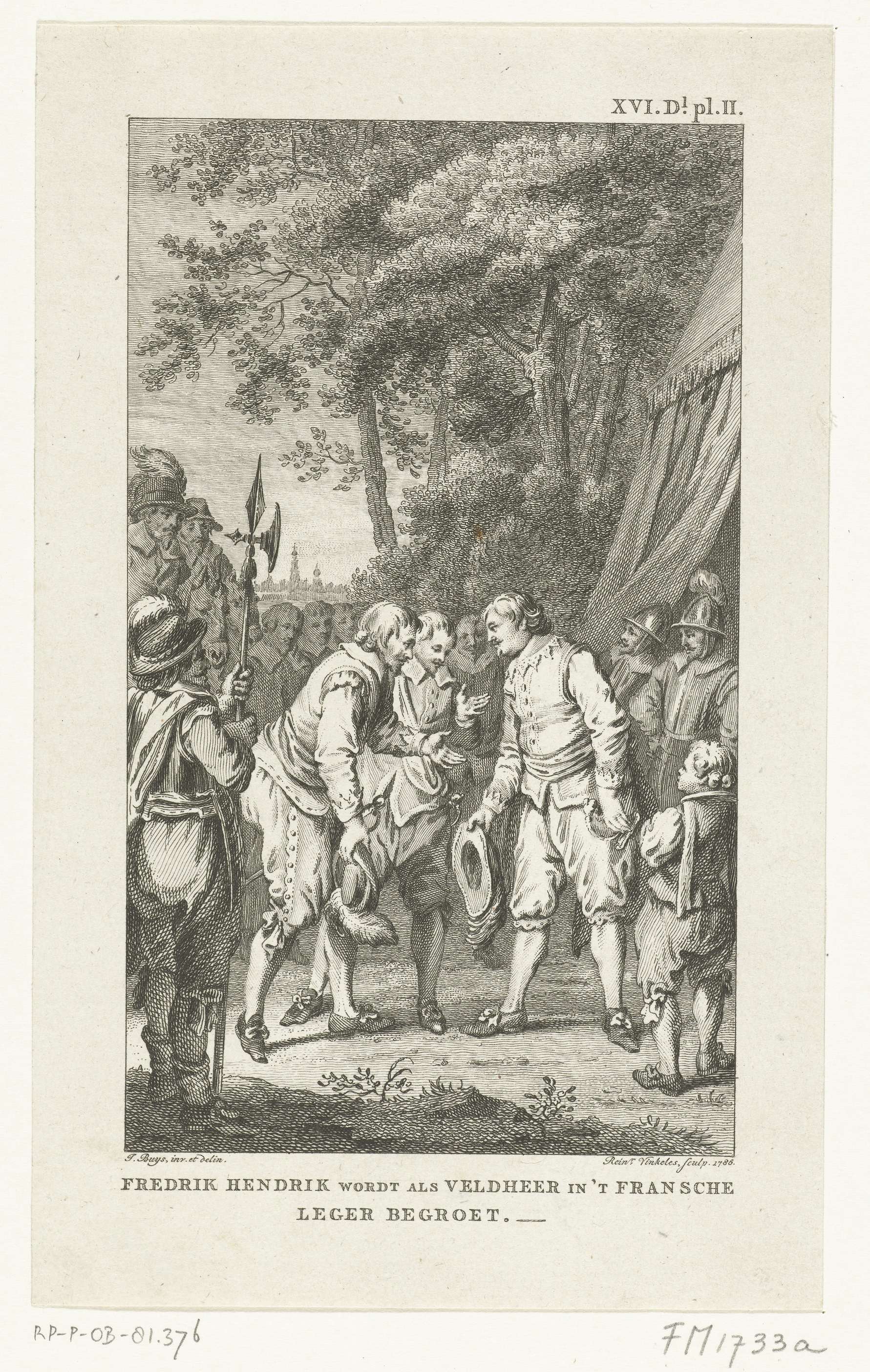 Stadhouder Frederik Hendrik wordt als veldheer in het legerkamp van het Franse leger begroet, mei 1635.