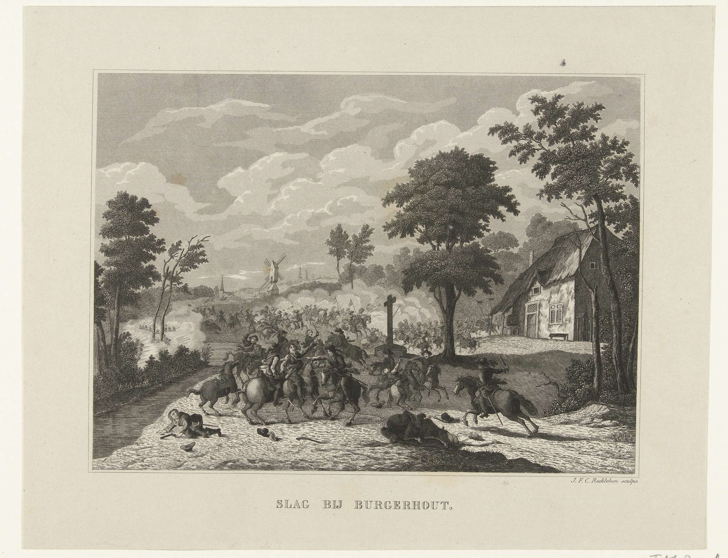 Gevecht bij Borgerhout in de buurt van Antwerpen waarbij een Spaans leger van Don Andrea Cantelmo onder bevel van Don Juan de Borges is verslagen door de Staatse troepen onder bevel van prins Willem II, 4 september 1643. Ruitergevecht in het dorp.