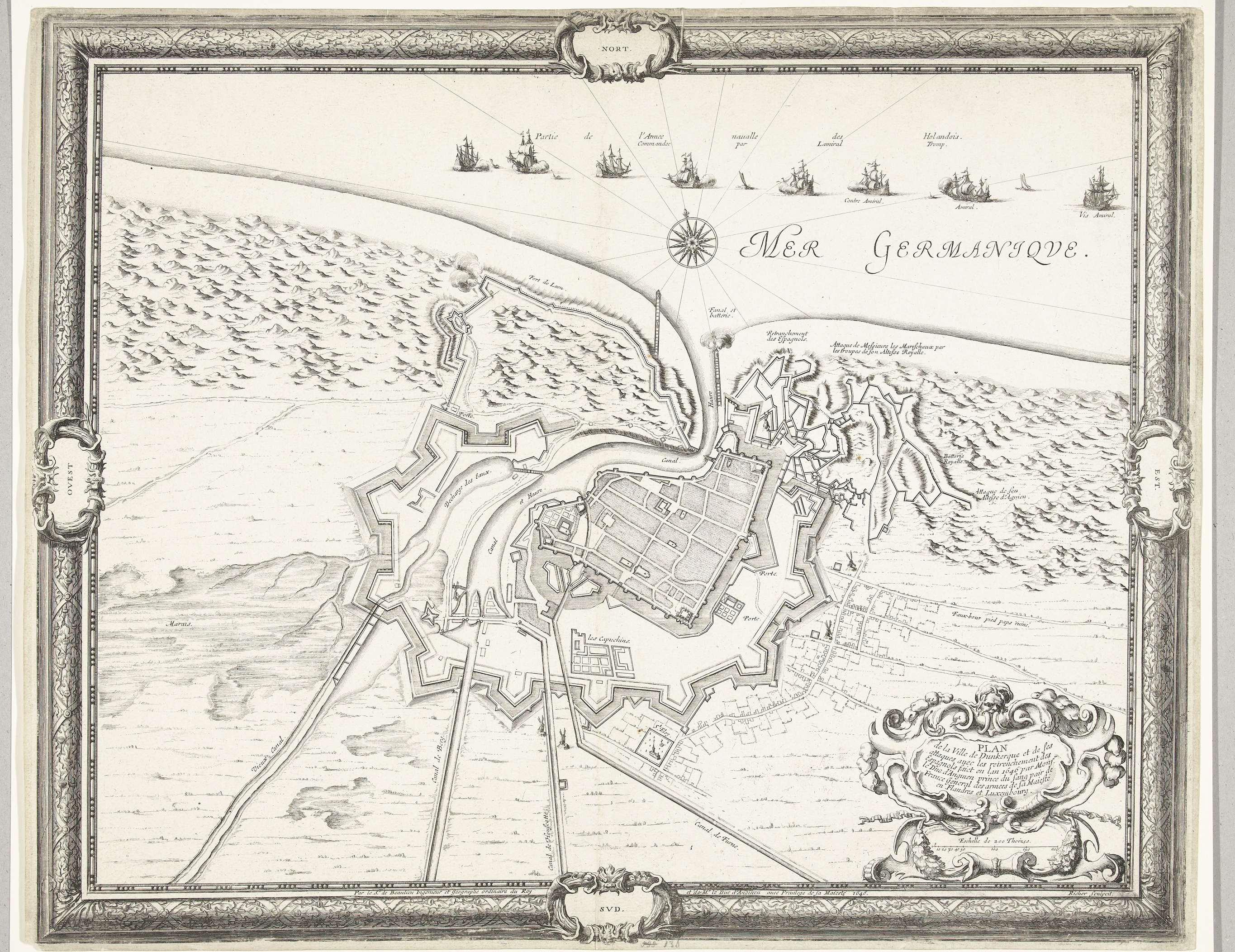 Plattegrond van Duinkerken, belegerd door het Franse leger onder de hertog van Enghien, 1646