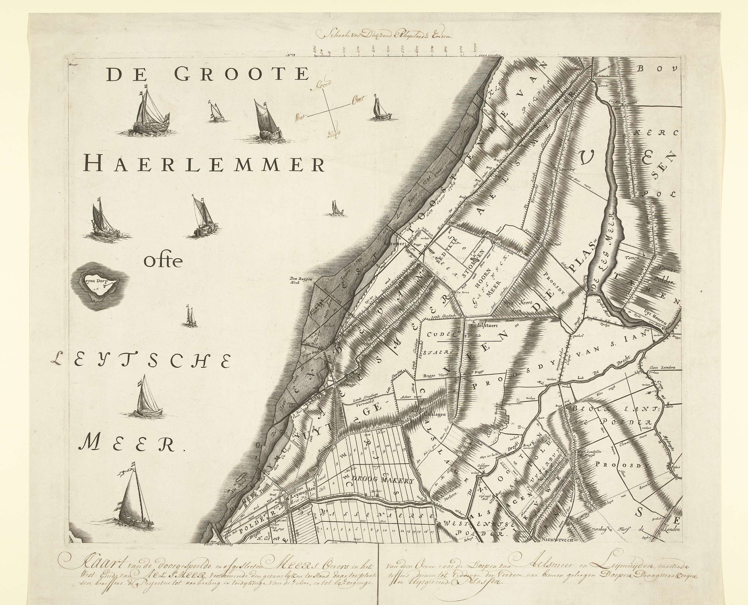 Kaart met de oude oevers van de Haarlemmermeer, ca. 1770