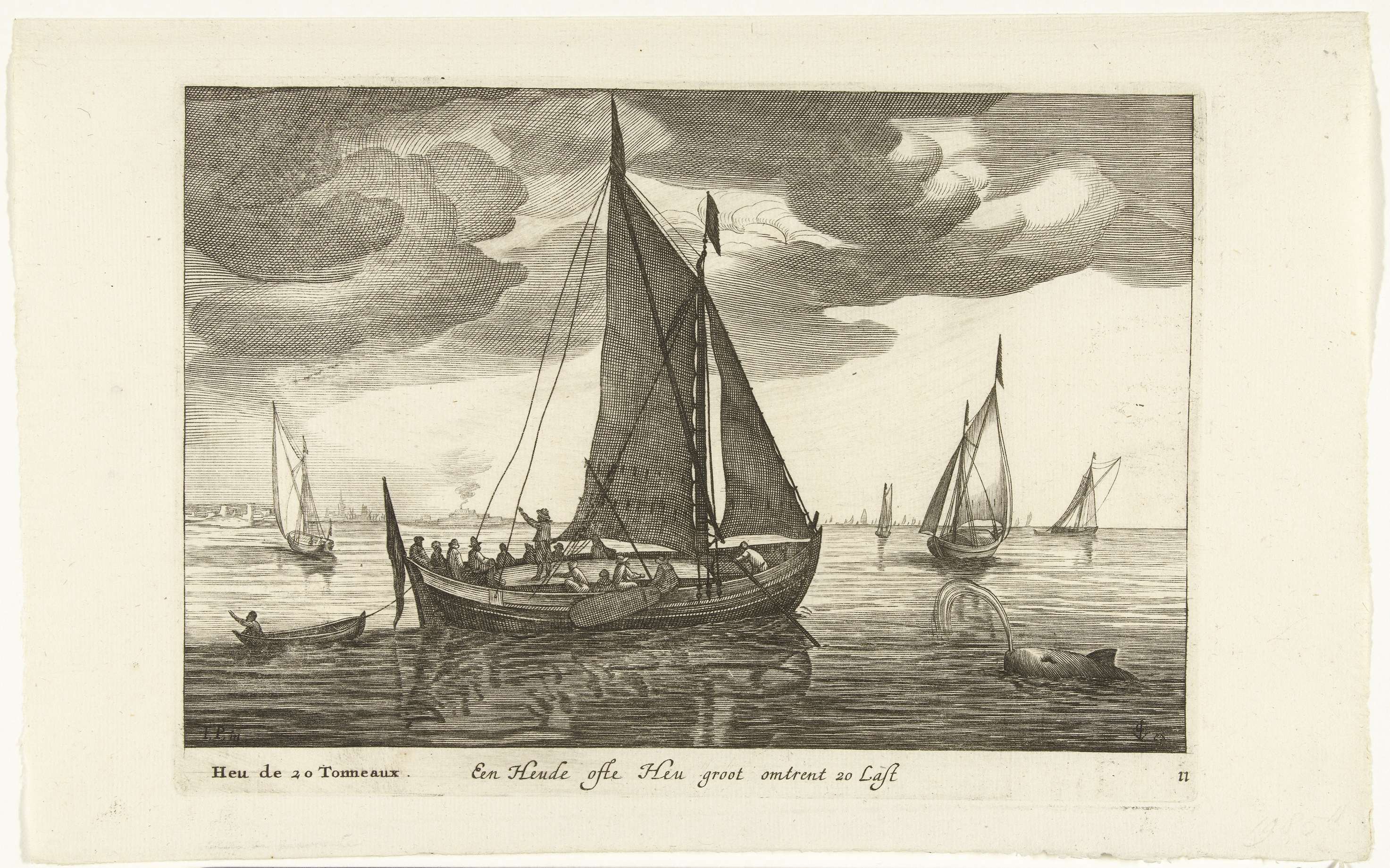 Een heude of heu op het water. Prent nr. 11 in een serie prenten van Hollandse scheepstypen, 1627. .