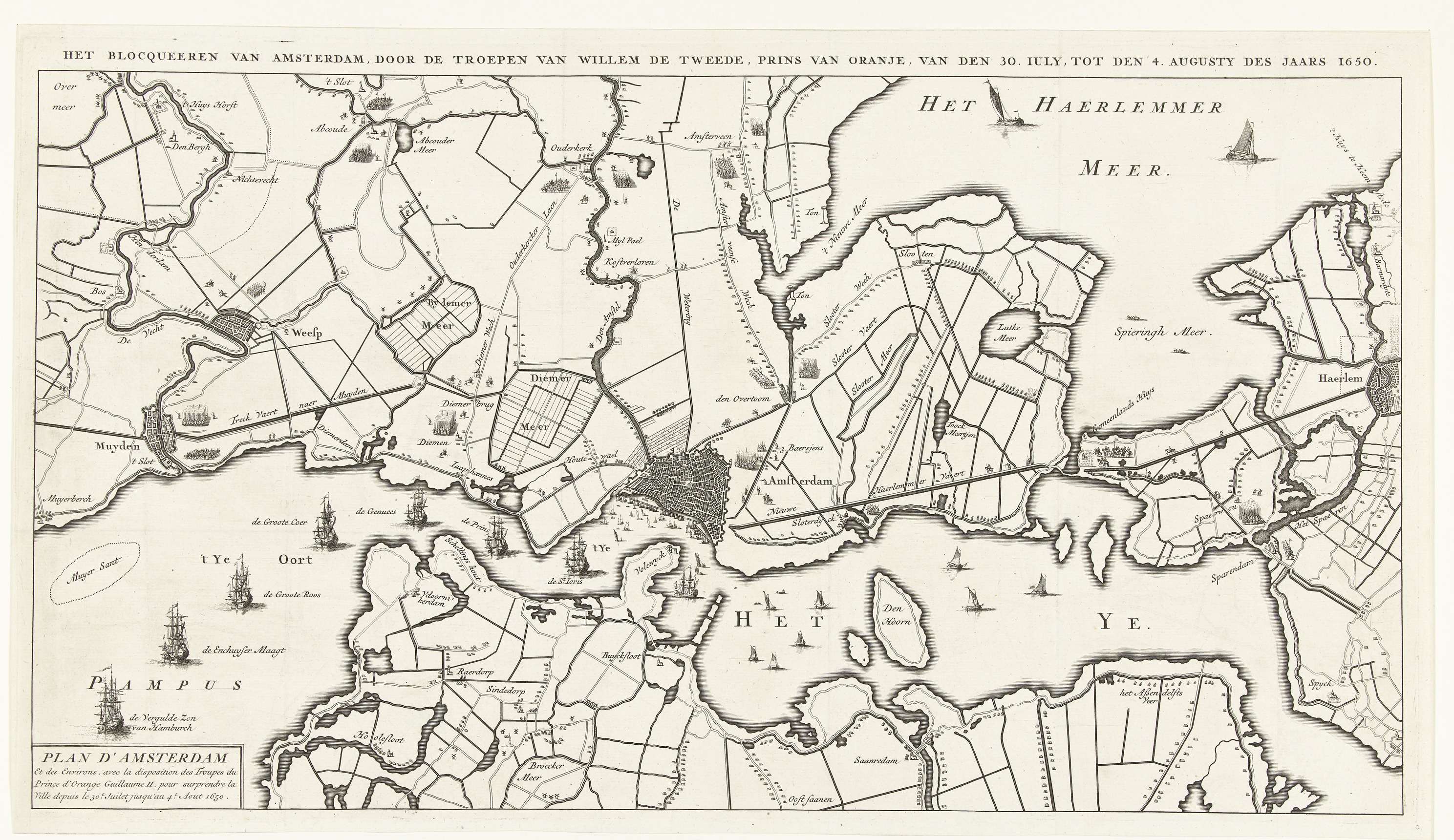 Kaart van de blokkade van Amsterdam door de troepen van Willem II, 1650