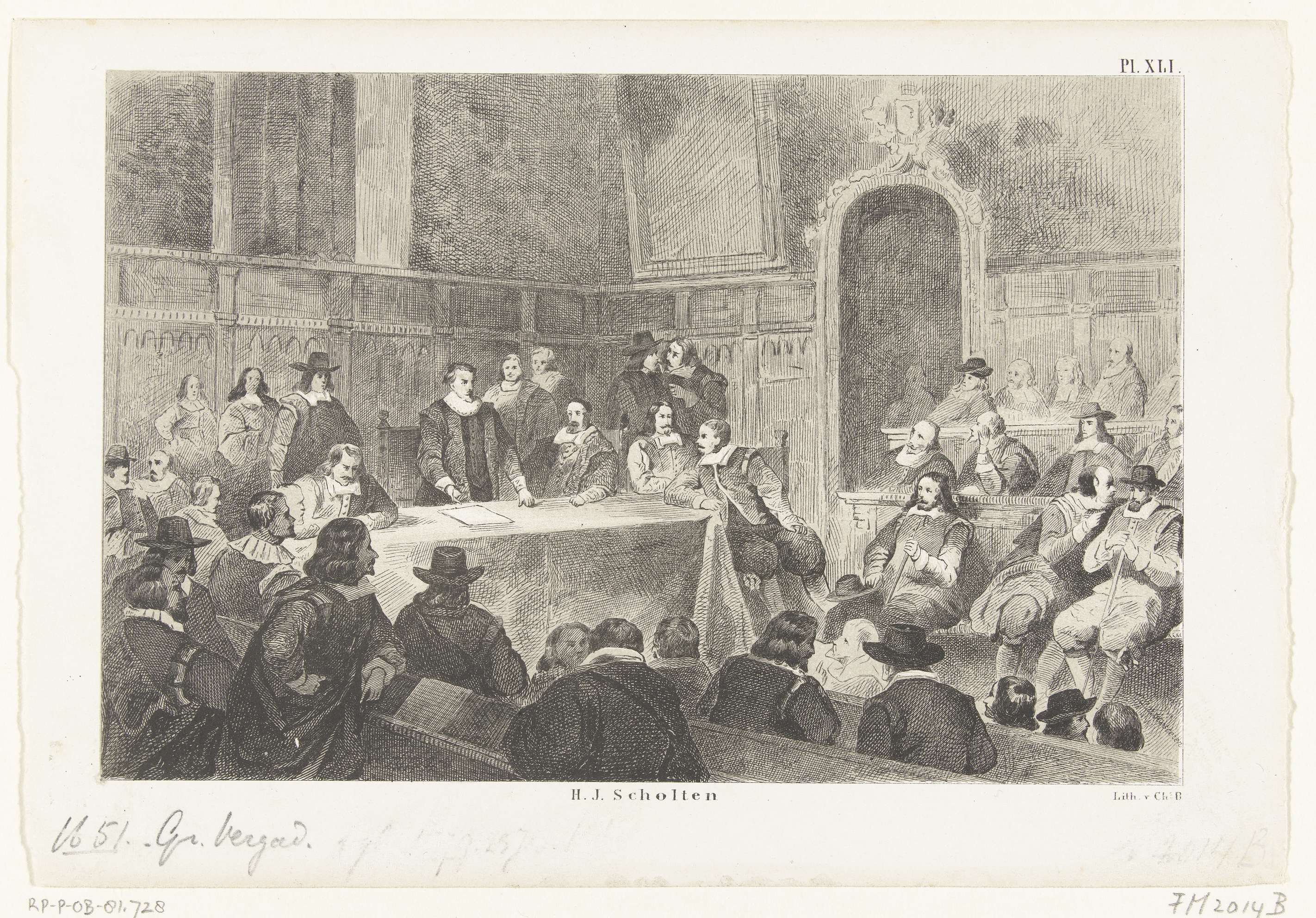 Jacob Cats spreekt de afgevaardigden toe tijdens de Eerste Grote Vergadering van de Staten-Generaal in de Ridderzaal van 18 tot 21 januari 1651. Vergadering belegd na het overlijden van prins Willem II op 6 november 1650.