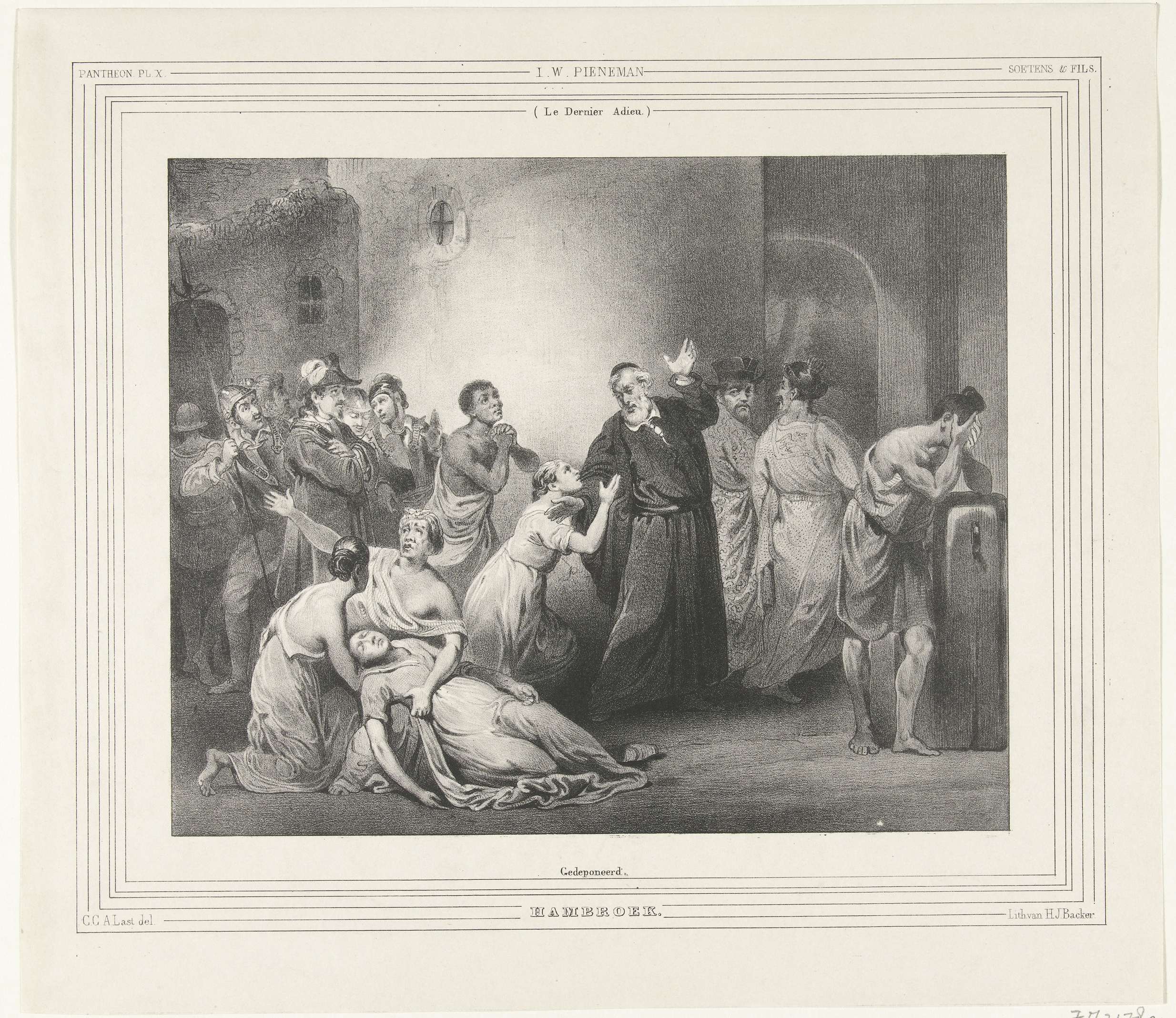 De zelfopoffering van predikant Hambroeck op Formosa. Na het verzoek om overgave van de Chinezen persoonlijk te hebben overgebracht aan de Hollandse bevelhebbers van Fort Zeelandia op Formosa, neemt Hambroeck afscheid van zijn dochters en keert terug naar de Chinese zeerover Coxinga, 24 mei 1661. In oktober 1661 wordt hij door de Chinezen vermoord.