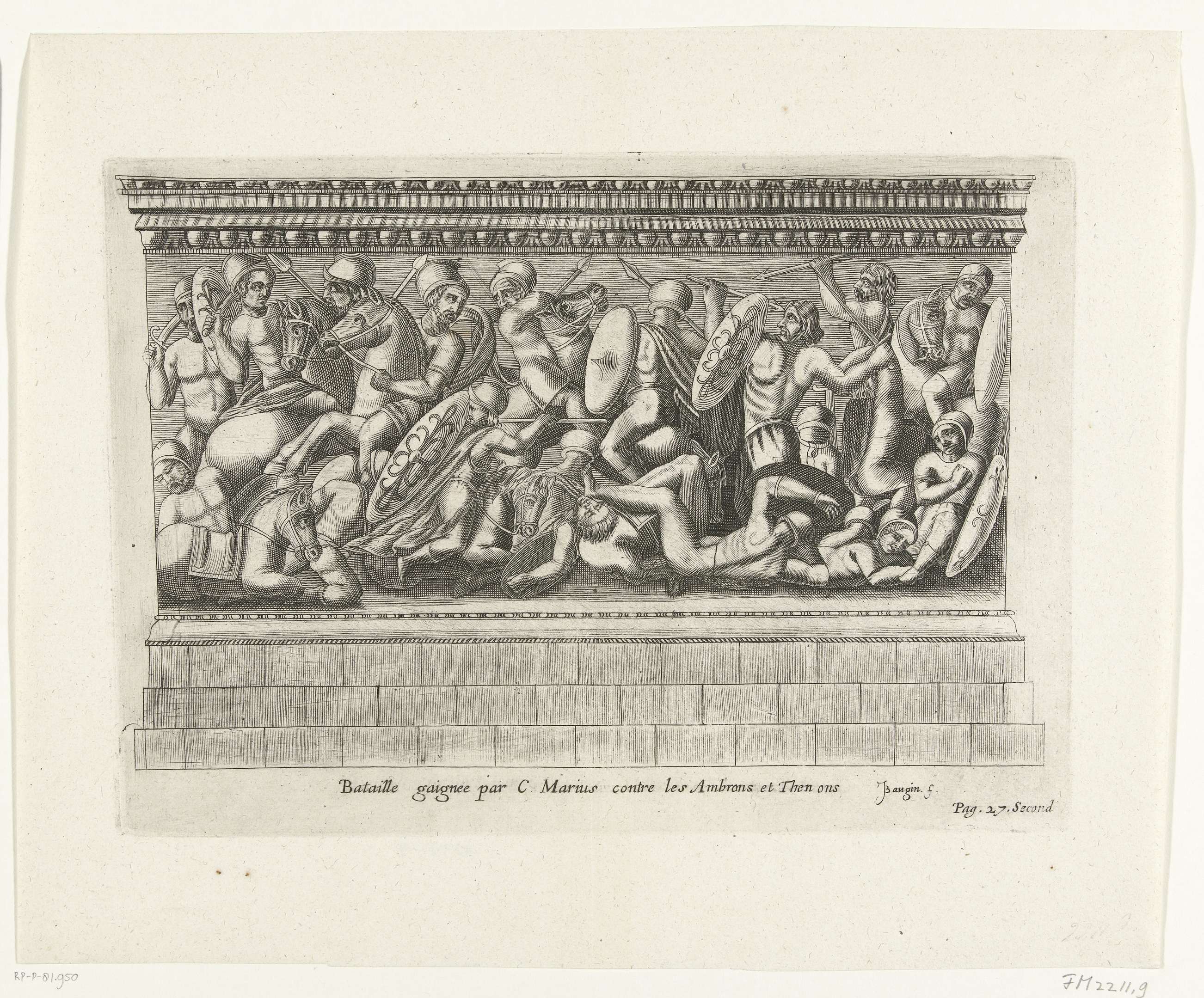 Reliëf op de Romeinse triomfboog in Orange. Gemerkt rechtsonder: Pag. 27. Second.