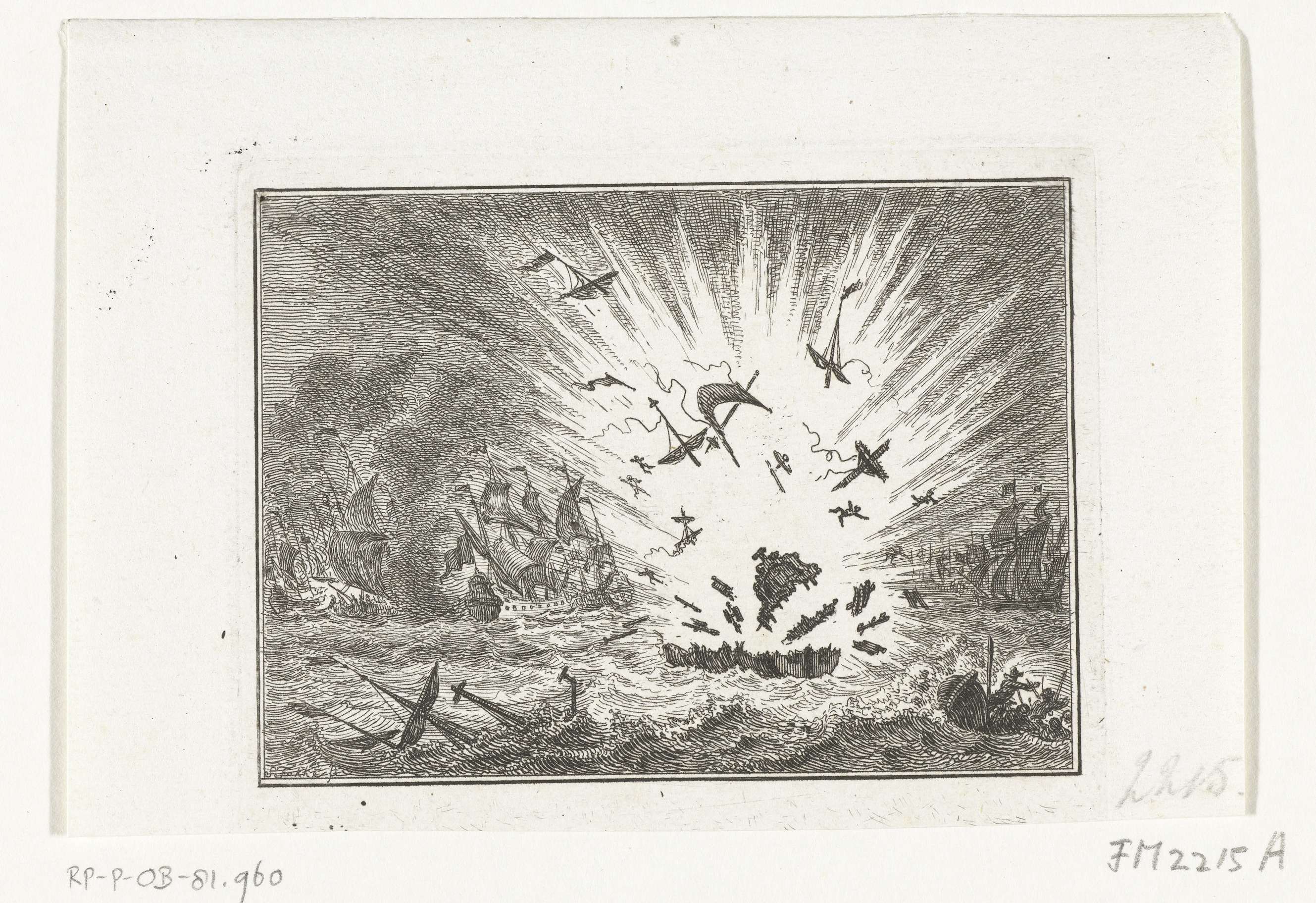 Zeegevecht voor Lowestoft (Lestoffe) tussen de Engelsen onder de hertog van York en de Nederlanders onder Wassenaer van Obdam, 13 juni 1665. Centraal het ontploffen van de Eendracht, het vlaggenschip van admiraal Wassenaer van Obdam.