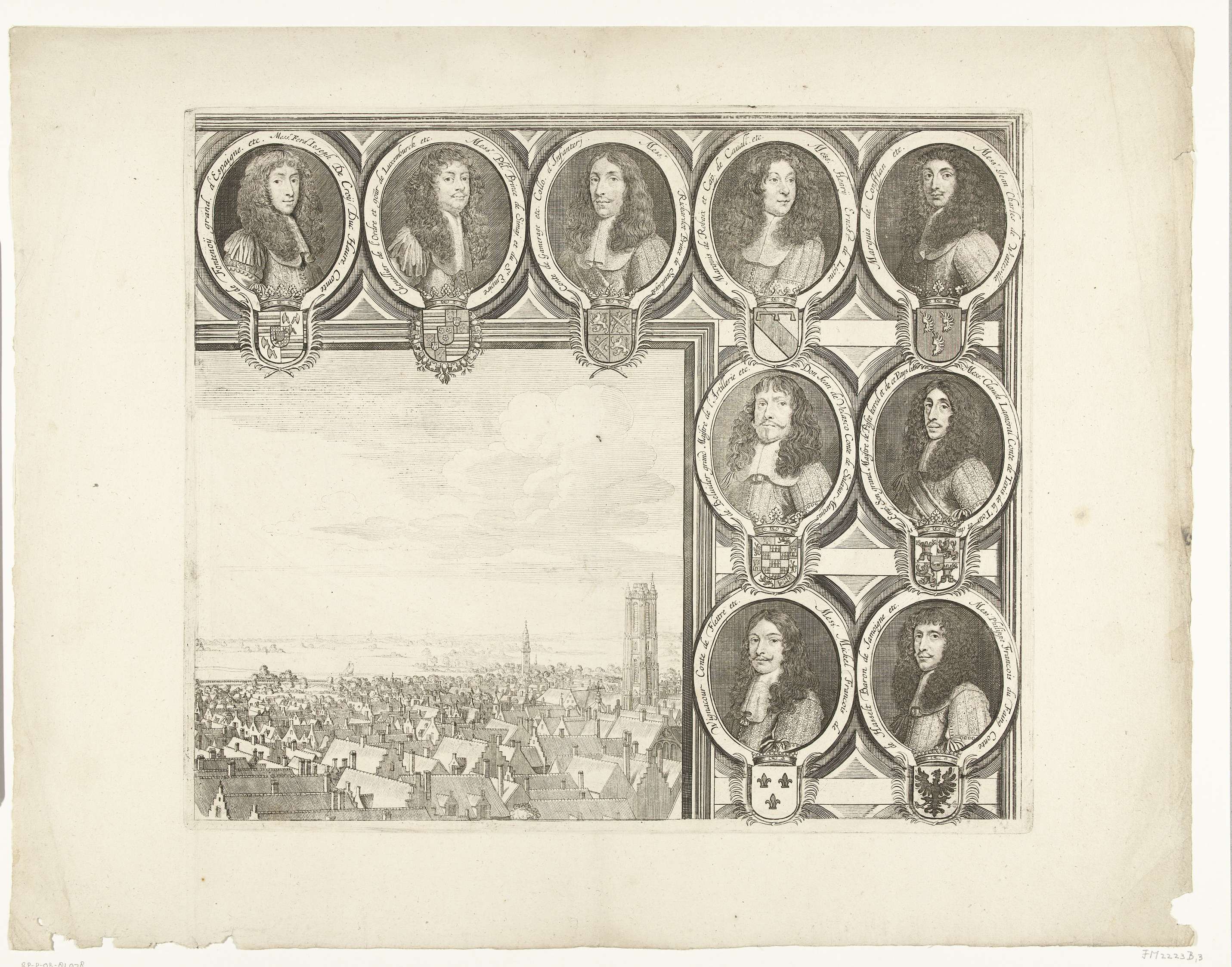 Ceremonie op de Vrijdagmarkt te Gent bij de proclamatie van de Spaanse koning Karel II als graaf van Vlaanderen, 2 mei 1666. Blad 3 in een ongemonteerde ensemble van 12 platen van de ceremonie en cavalcade op het plein en 118 portretten van de hoogwaardigheidsbekleders die bij de plechtigheid aanwezig waren.