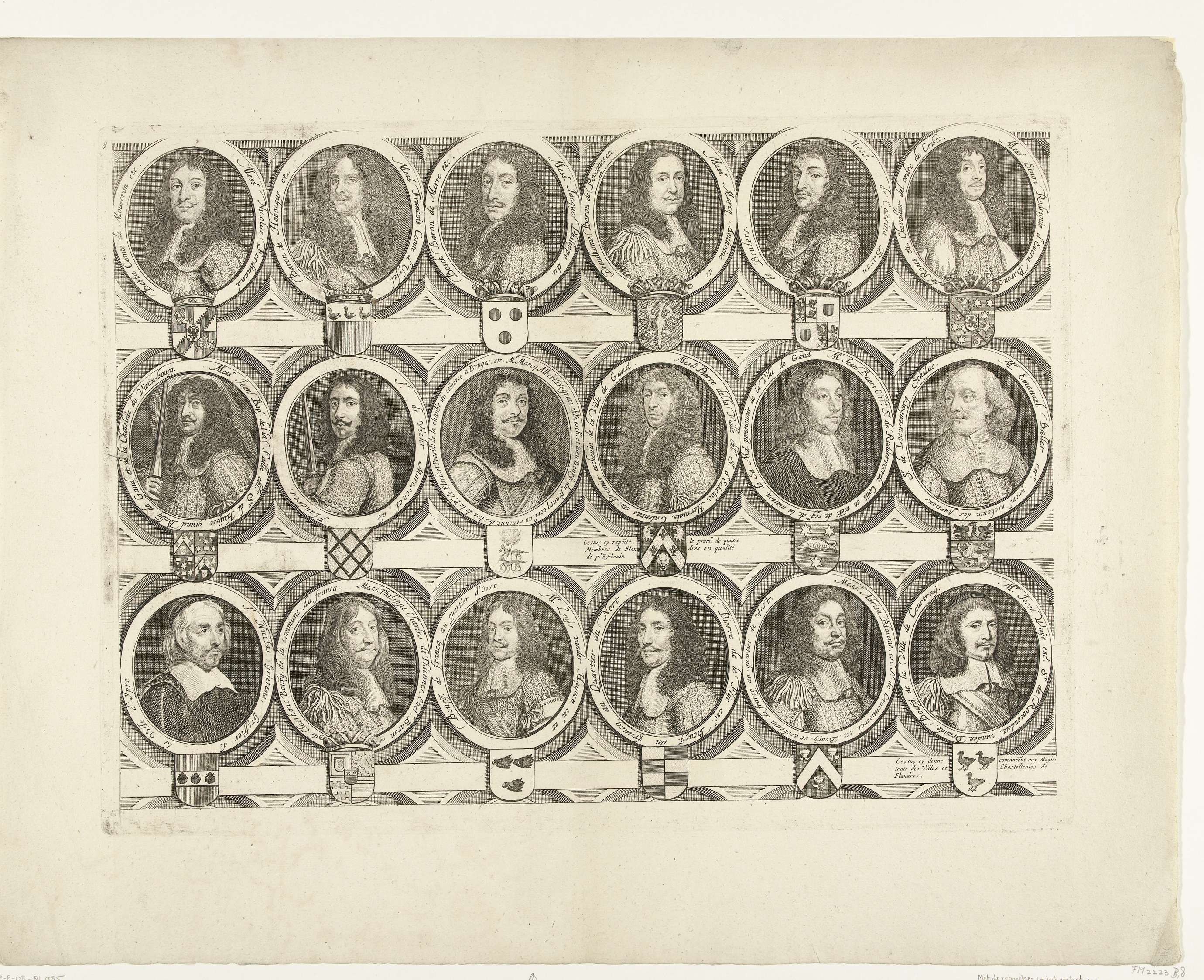 Ceremonie op de Vrijdagmarkt te Gent bij de proclamatie van de Spaanse koning Karel II als graaf van Vlaanderen, 2 mei 1666. Blad 8 in een ongemonteerde ensemble van 12 platen van de ceremonie en cavalcade op het plein en 118 portretten van de hoogwaardigheidsbekleders die bij de plechtigheid aanwezig waren. Genummerd linksboven: 8.