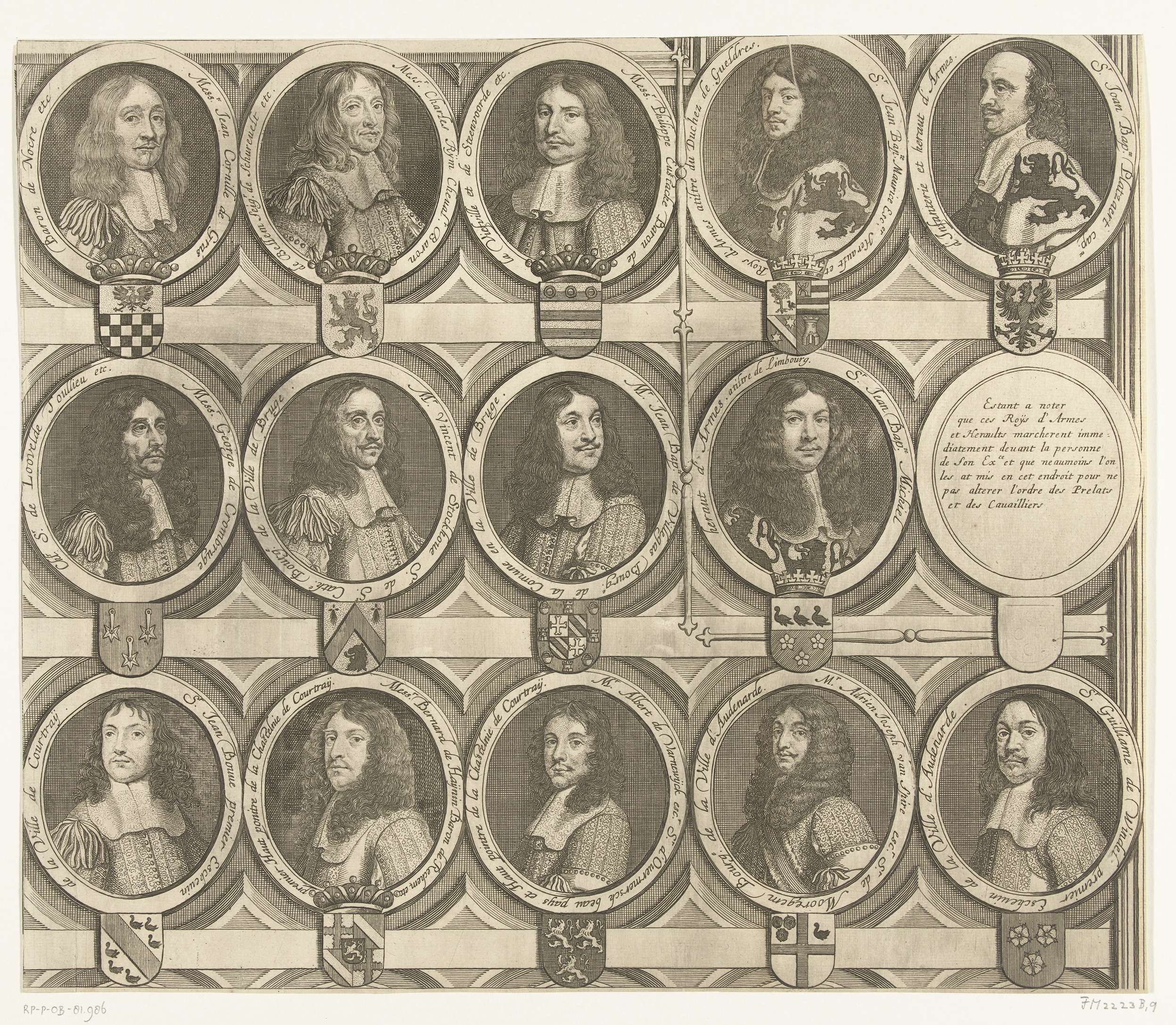 Ceremonie op de Vrijdagmarkt te Gent bij de proclamatie van de Spaanse koning Karel II als graaf van Vlaanderen, 2 mei 1666. Blad 9 in een ongemonteerde ensemble van 12 platen van de ceremonie en cavalcade op het plein en 118 portretten van de hoogwaardigheidsbekleders die bij de plechtigheid aanwezig waren.