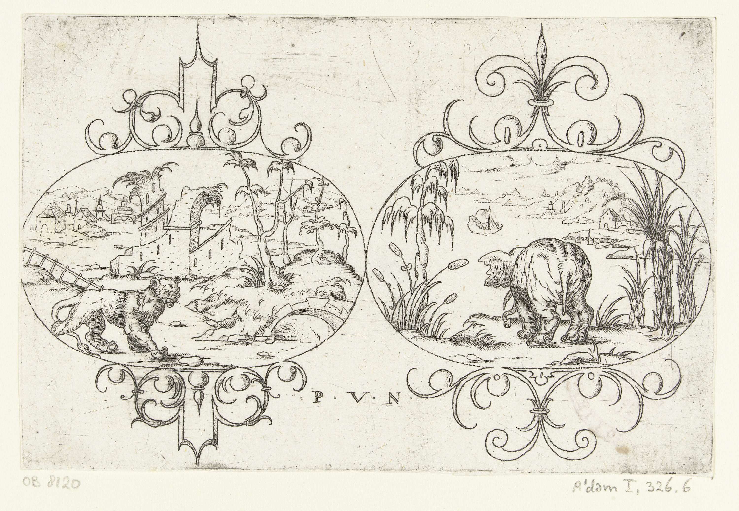 Ovaal rechts met een olifant. Uit serie van 12 bladen.