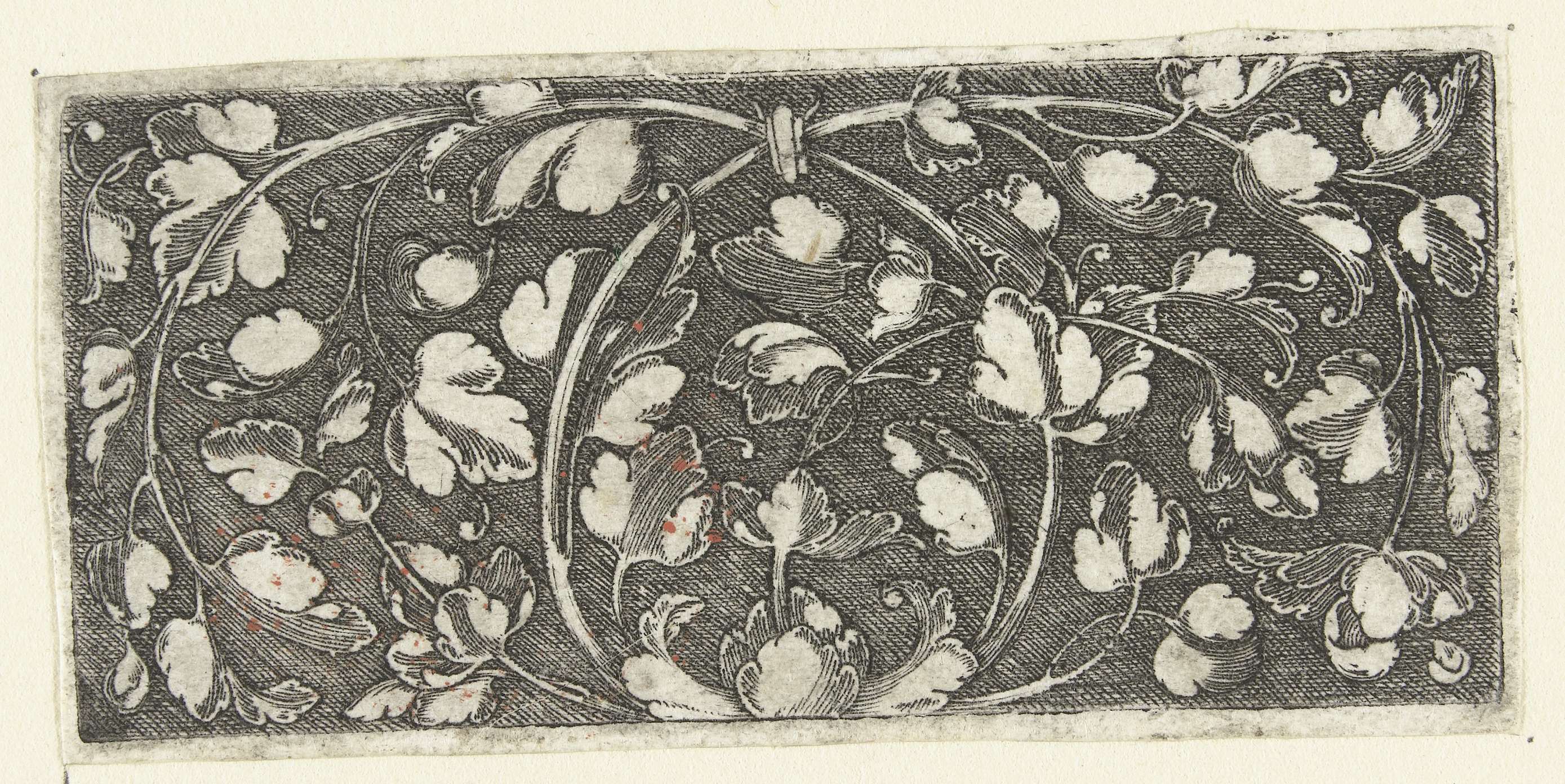 Twee gebogen bladranken, middenonder ontspruitend vanuit een blad