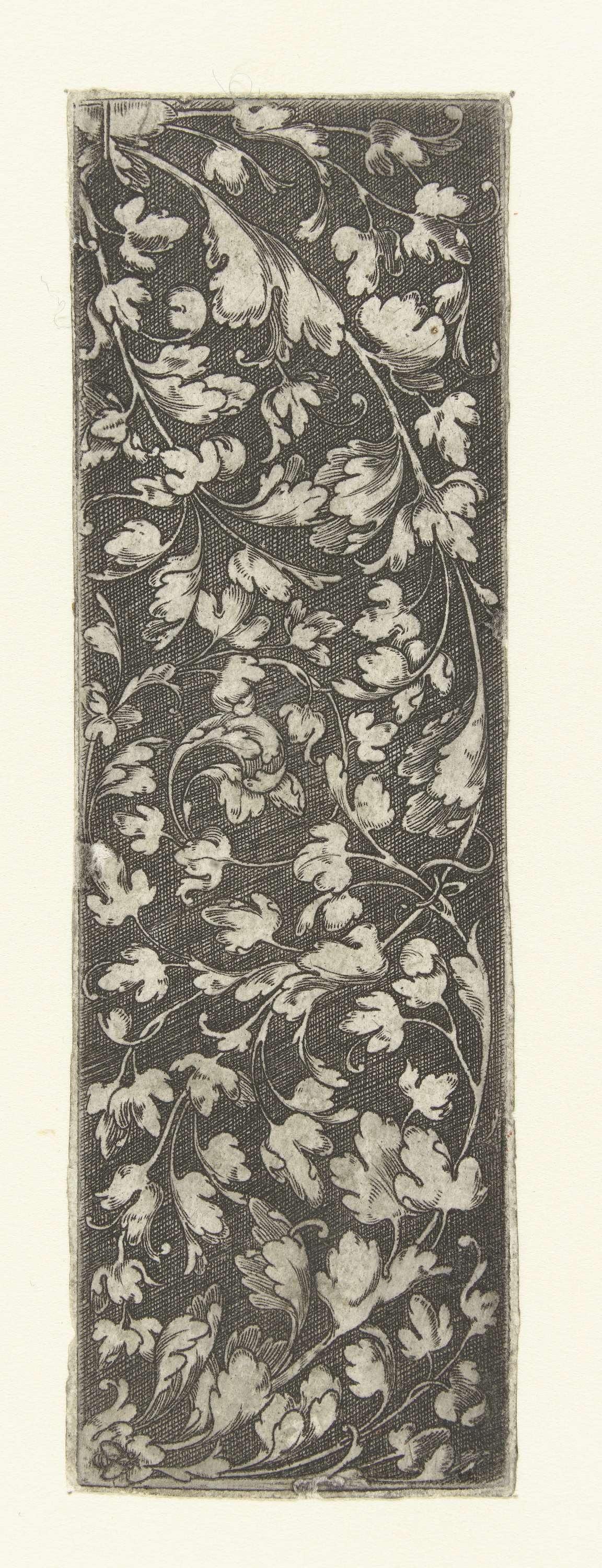Twee voluten van bladranken, ontspruitend vanuit beide uiteinden van het fries