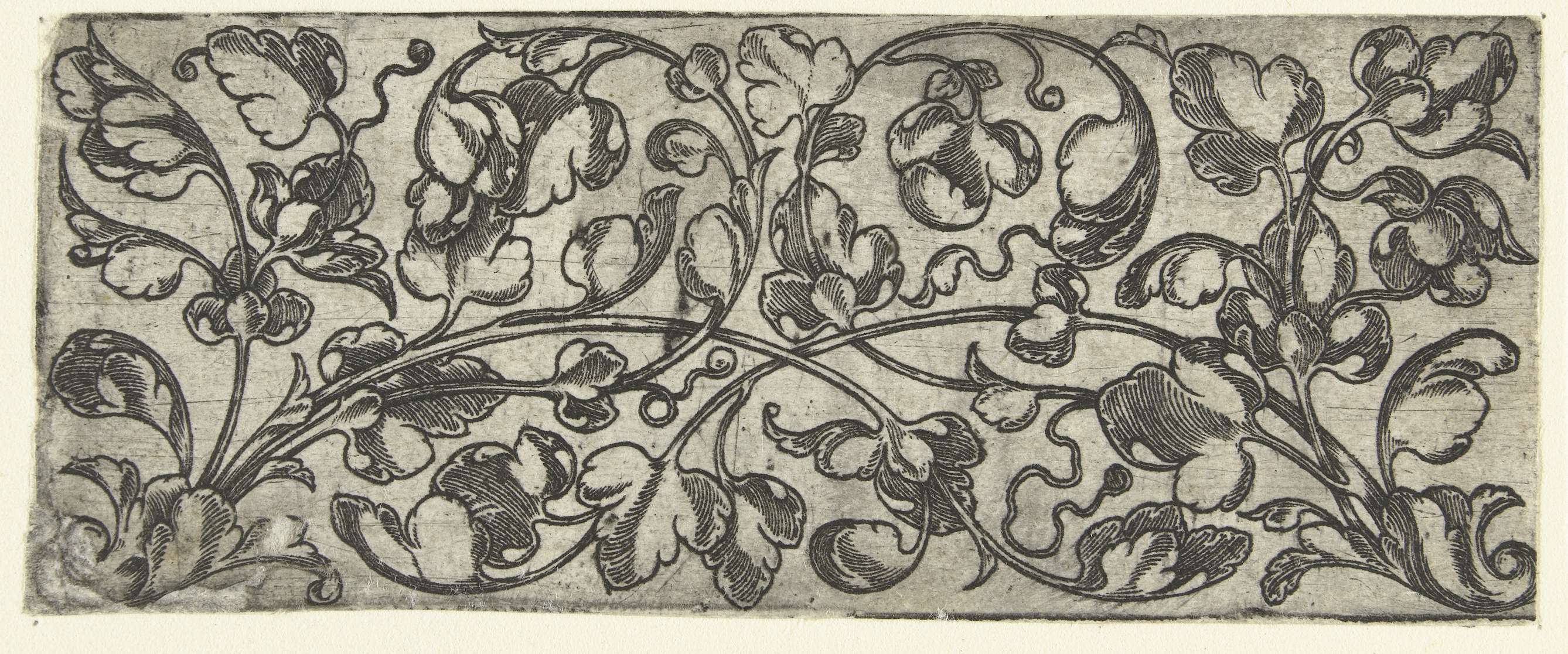 Bladranken, ontspruitend aan beide uiteinden van het fries uit een blad