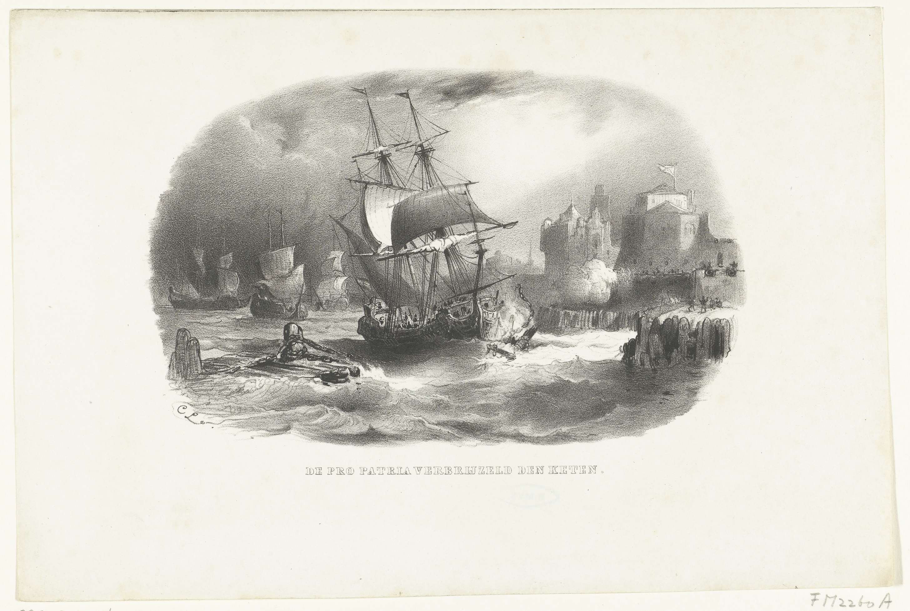 Het overvaren van de ketting in de Medway door kapitein Jan van Brakel met zijn schip de Vreede en de branders Suzanna en Pro Patria, 22 juni 1667. Episode uit de Tocht naar Chatham en de vernietiging van de Engelse vloot op 20-23 juni 1667 door de Staatse vloot onder De Ruyter.