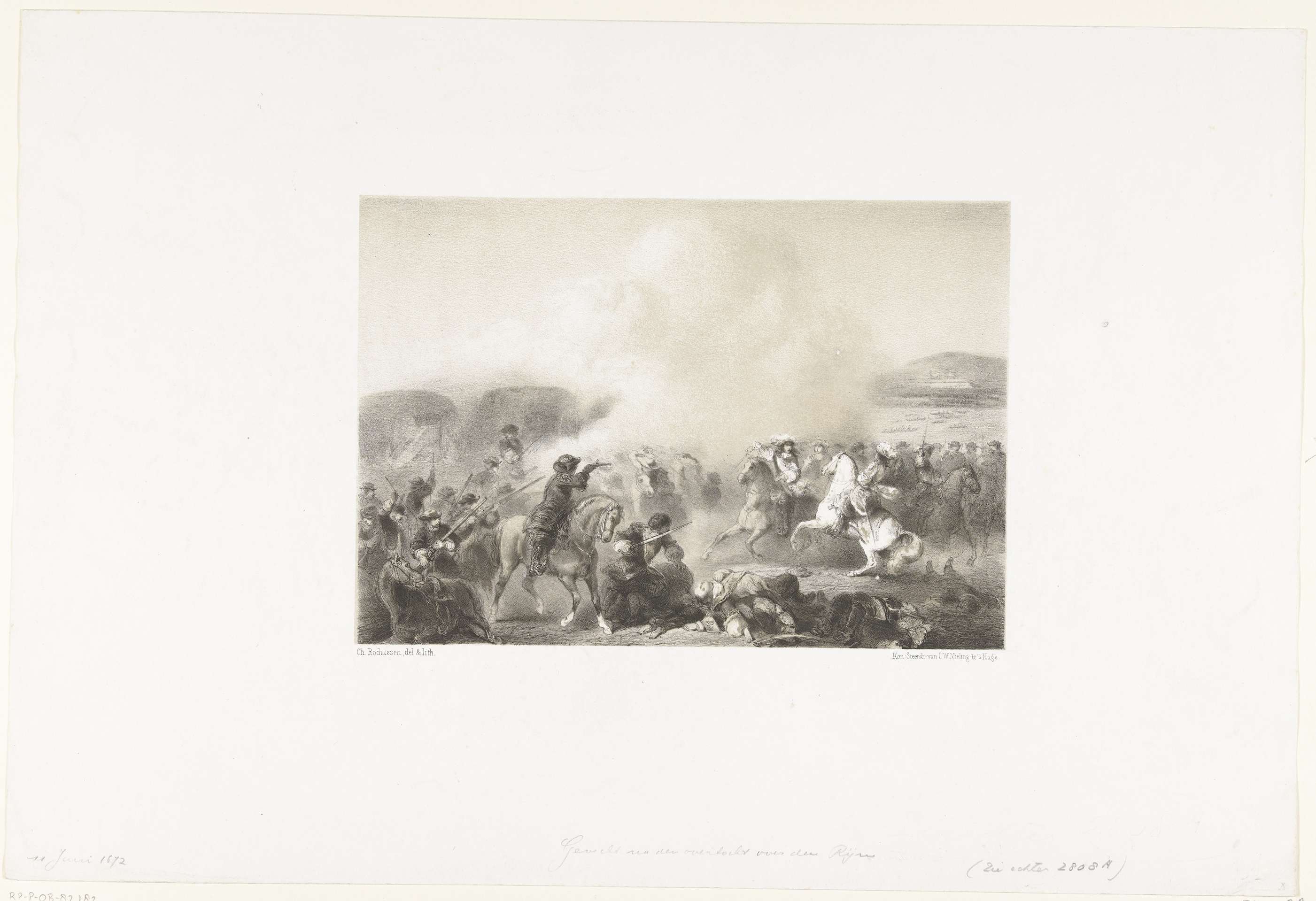Gevecht na de overtocht over de Rijn, 11 juni 1672. Ruitergevecht tussen Staatse en Franse ruiterij.
