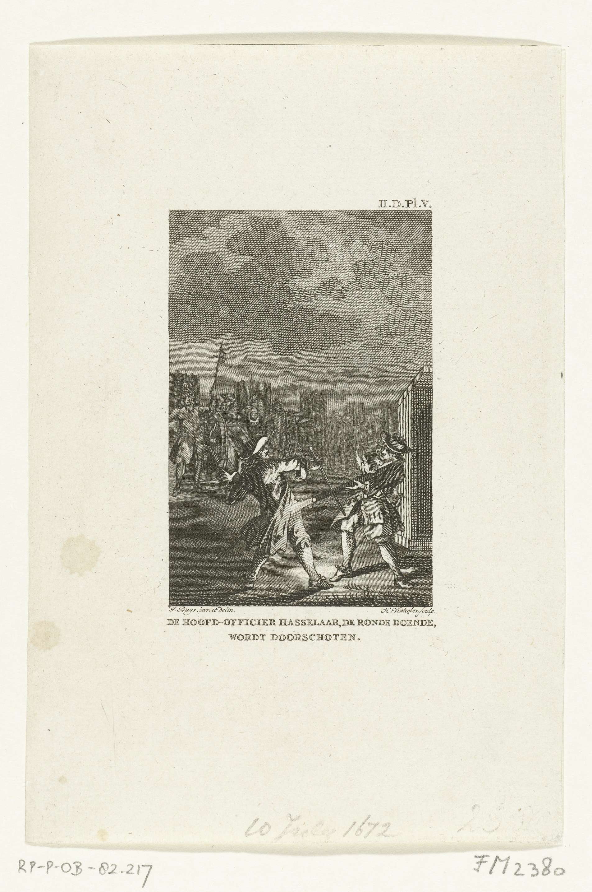 Hoofdofficier (burgemeester) Gerard Hasselaar te Amsterdam per ongeluk door een schildwacht neergeschoten, in de nacht van 28 op 29 juni 1672, overleden op 11 juni 1673.