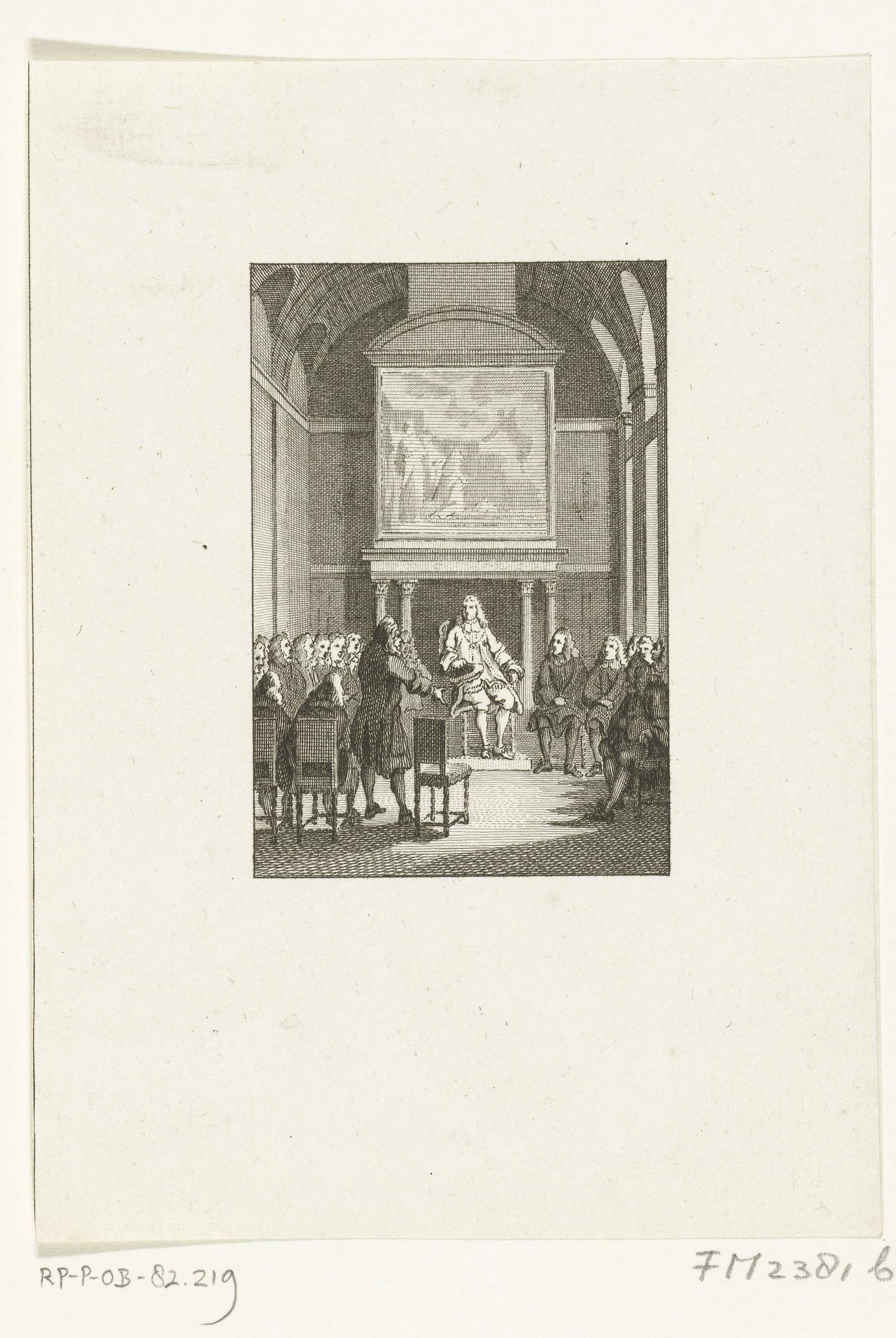 Prins Willem III ontvangen in de vroedschap op het stadhuis te Amsterdam, 12 augustus 1672.