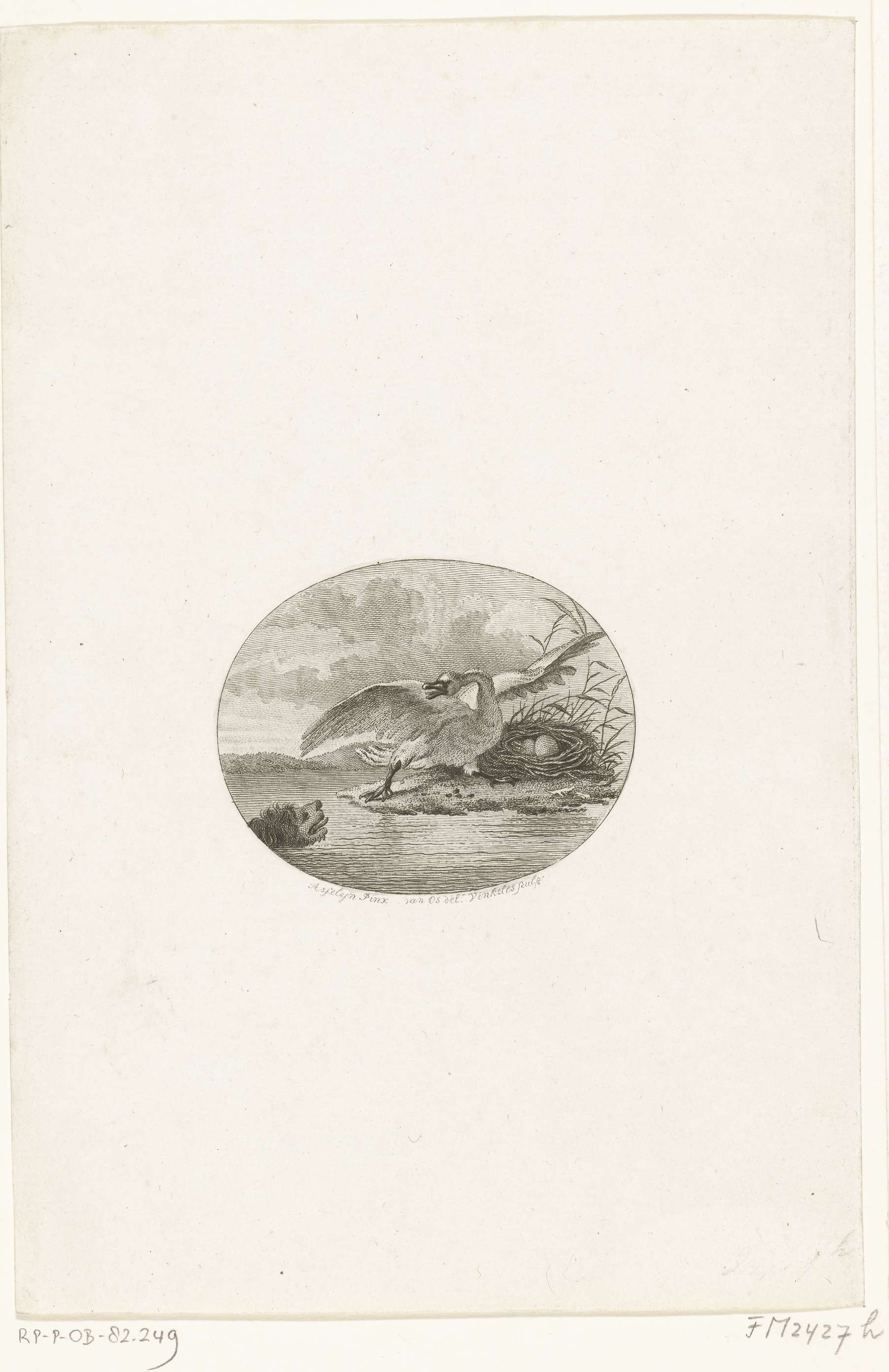 Gegraveerde titelpagina met een ovaal vignet met de bedreigde zwaan naar het schilderij van Jan Asselijn. Een zwaan verdedigt haar nest met eieren tegen een zwemmende hond. De voorstelling heeft een politieke allegorische interpretatie gekregen doordat de zwaan is geïnterpreteerd als de raadpensionaris Johan de Witt, die Holland beschermt tegen de vijand, de Engelse hond.