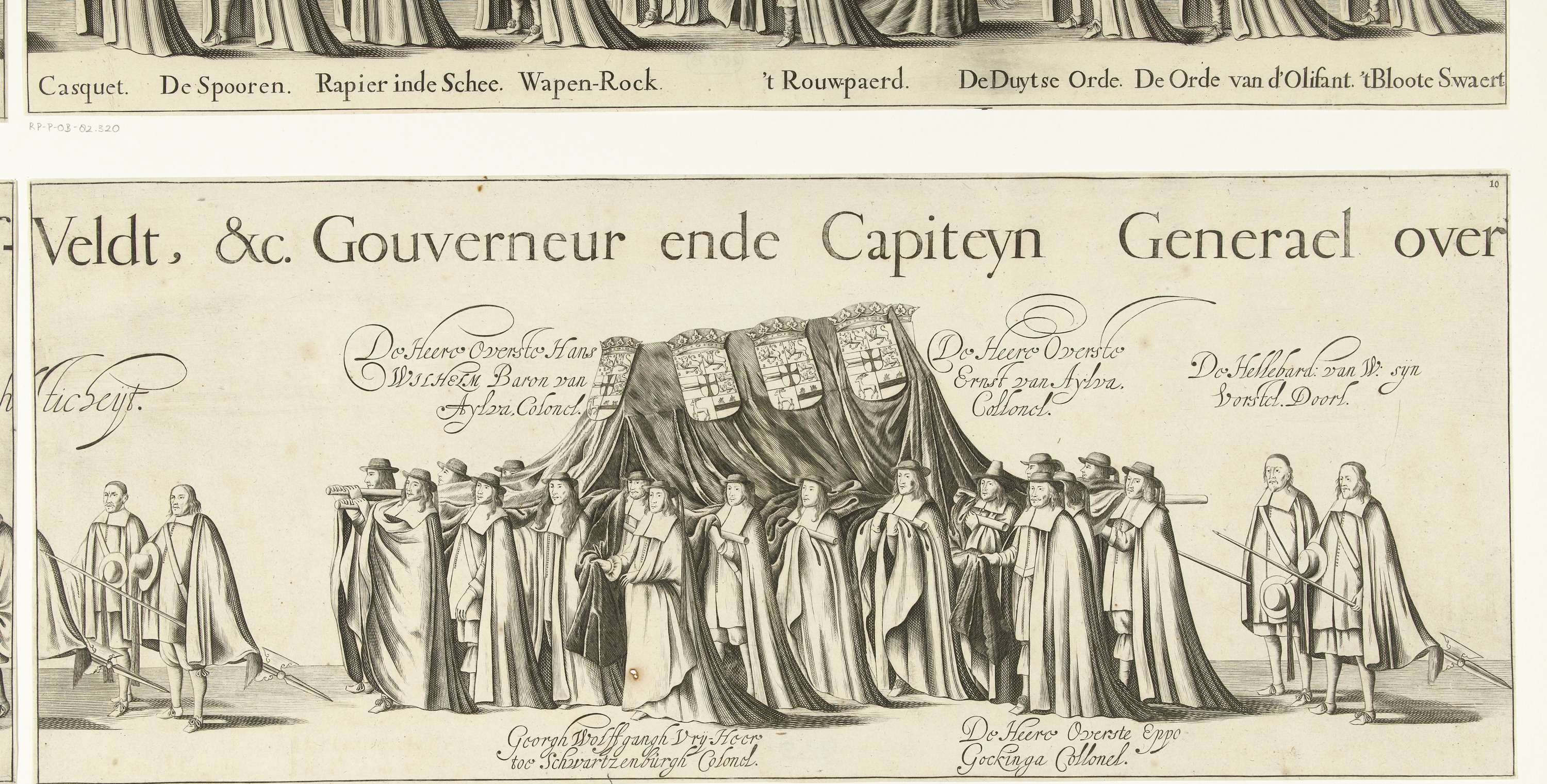 Begrafenisoptocht van Willem Frederik, graaf van Nassau-Dietz, in Leeuwarden op 6 januari 1665. Deel van de begrafenisstoet met de lijkkist. Plaat nr. 10 in een ensemble van 24 (van de 25) ongemonteerde genummerde platen (zonder tekstbladen) die samen een lange fries vormen.