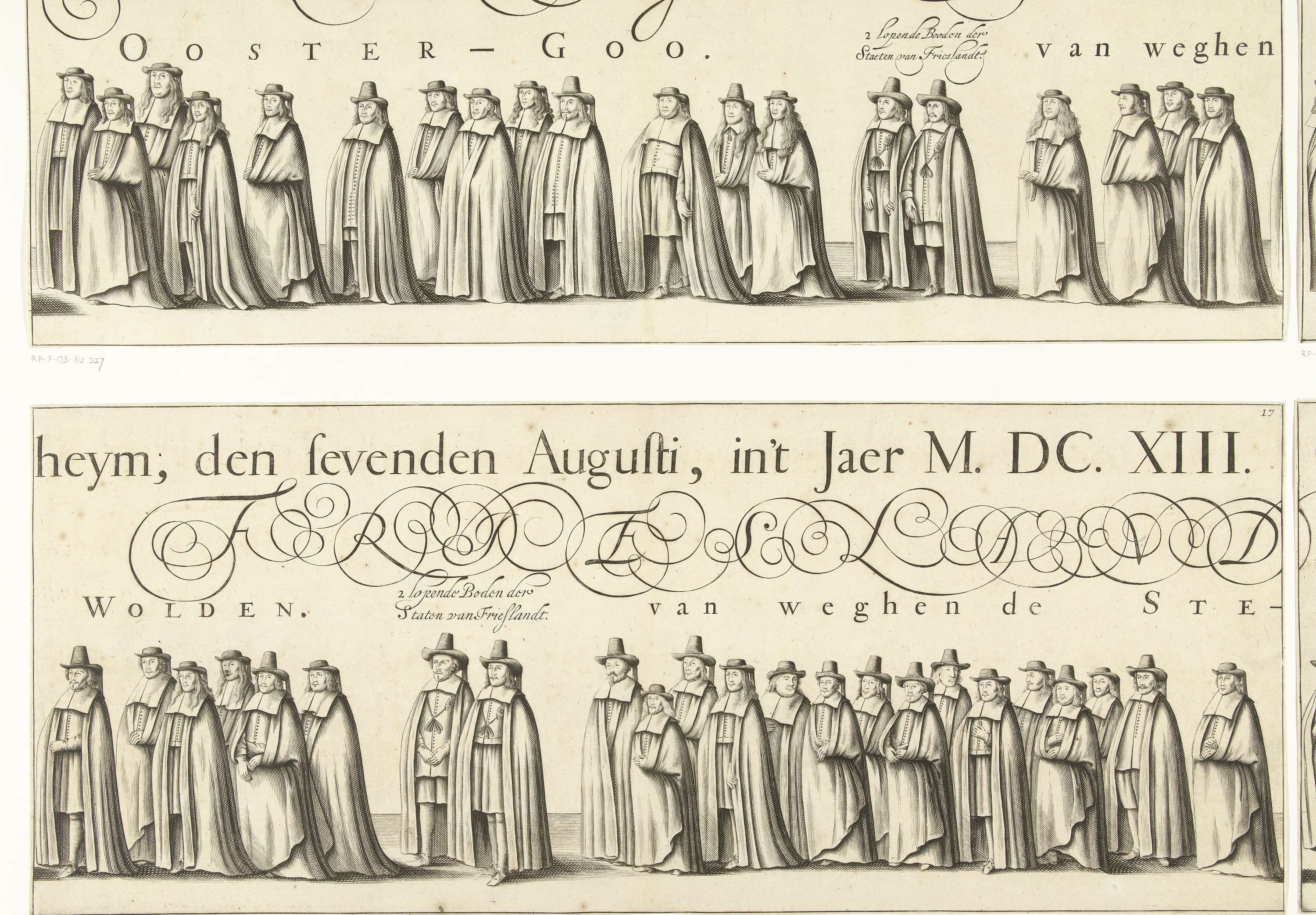 Begrafenisoptocht van Willem Frederik, graaf van Nassau-Dietz, in Leeuwarden op 6 januari 1665. Deel van de begrafenisstoet. Plaat nr. 17 in een ensemble van 24 (van de 25) ongemonteerde genummerde platen (zonder tekstbladen) die samen een lange fries vormen.