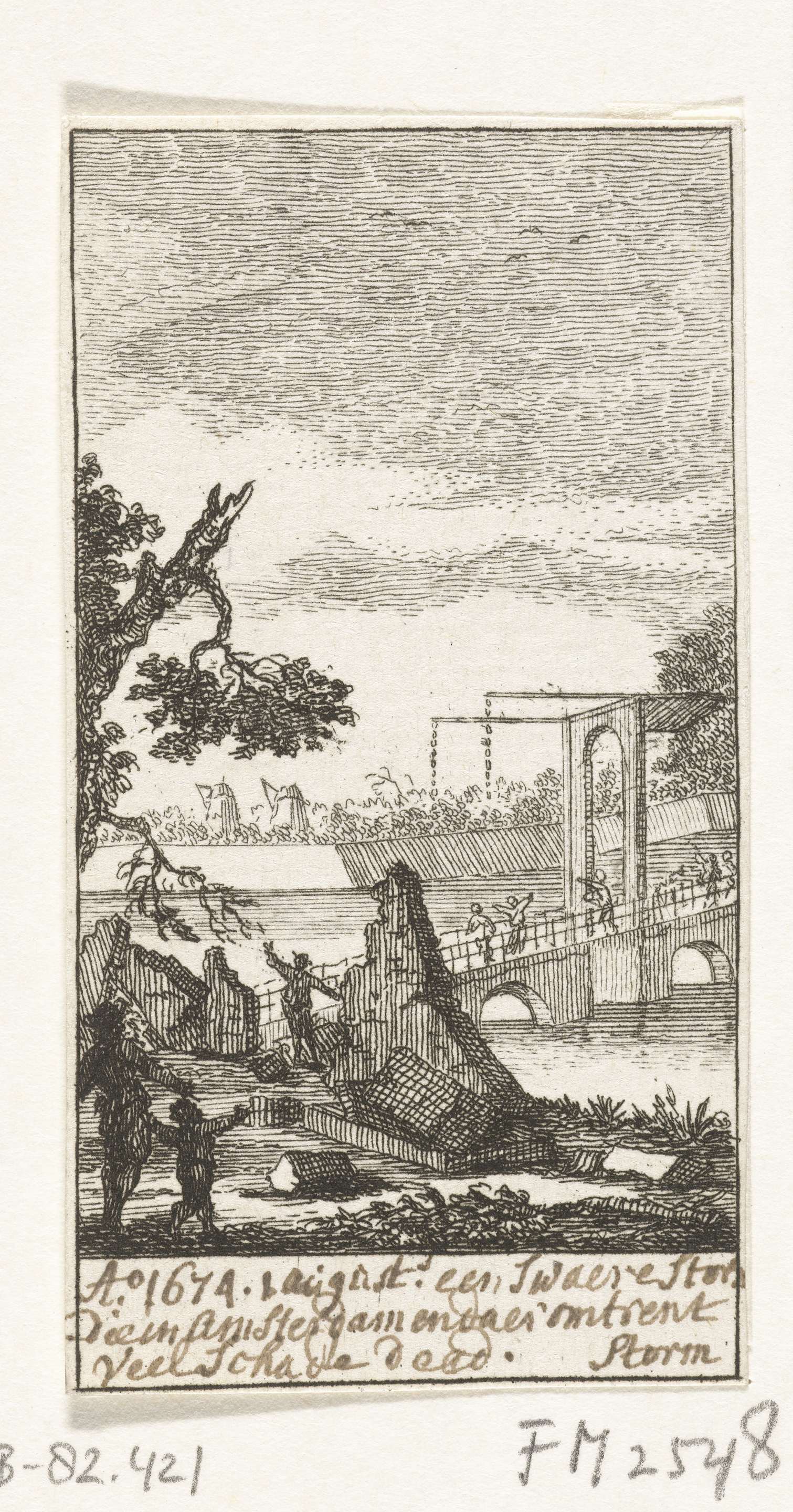 Schade aangericht door een zware storm in Amsterdam, 1 augustus 1674.