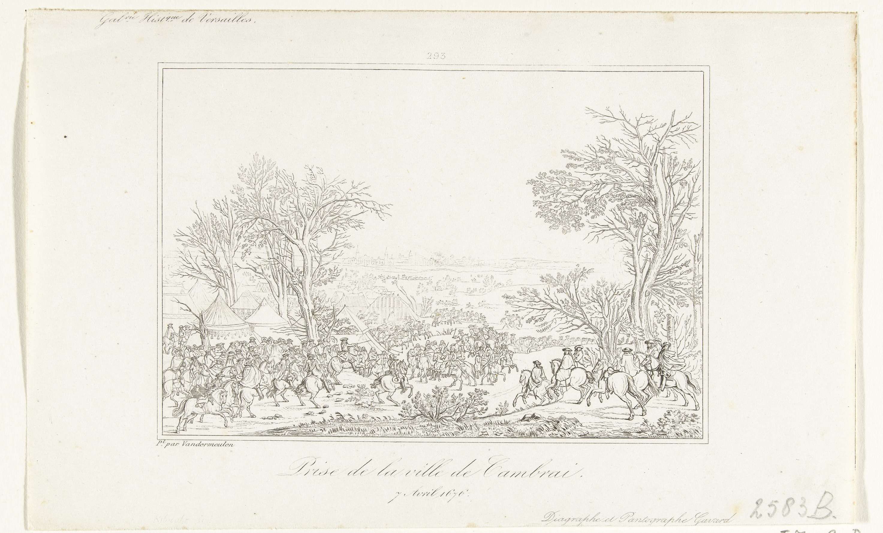 Het Franse leger verovert Cambrai (Kamerijk) op 7 april 1676. Naar het schilderij in het paleis van Versailles. Gemerkt bovenaan: 293.