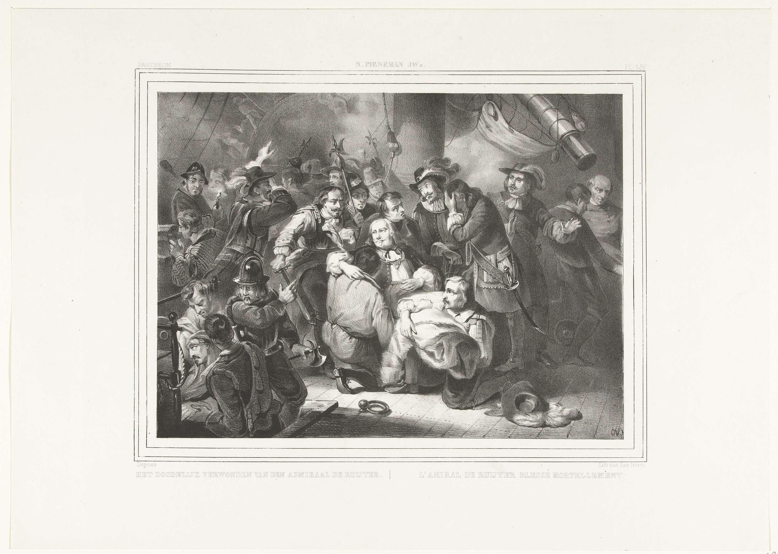 Admiraal Michiel Adriaenszoon de Ruyter raakt dodelijk gewond tijdens de zeeslag bij Agosta op 22 april 1676 tussen een gecombineerd Hollands-Spaanse vloot onder De Ruyter en een Franse vloot onder Abraham Duquesne. In alle hevigheid van de slag wordt De Ruyter wordt door zijn bemanning in een laken gewikkeld en naar zijn kajuit gedragen.