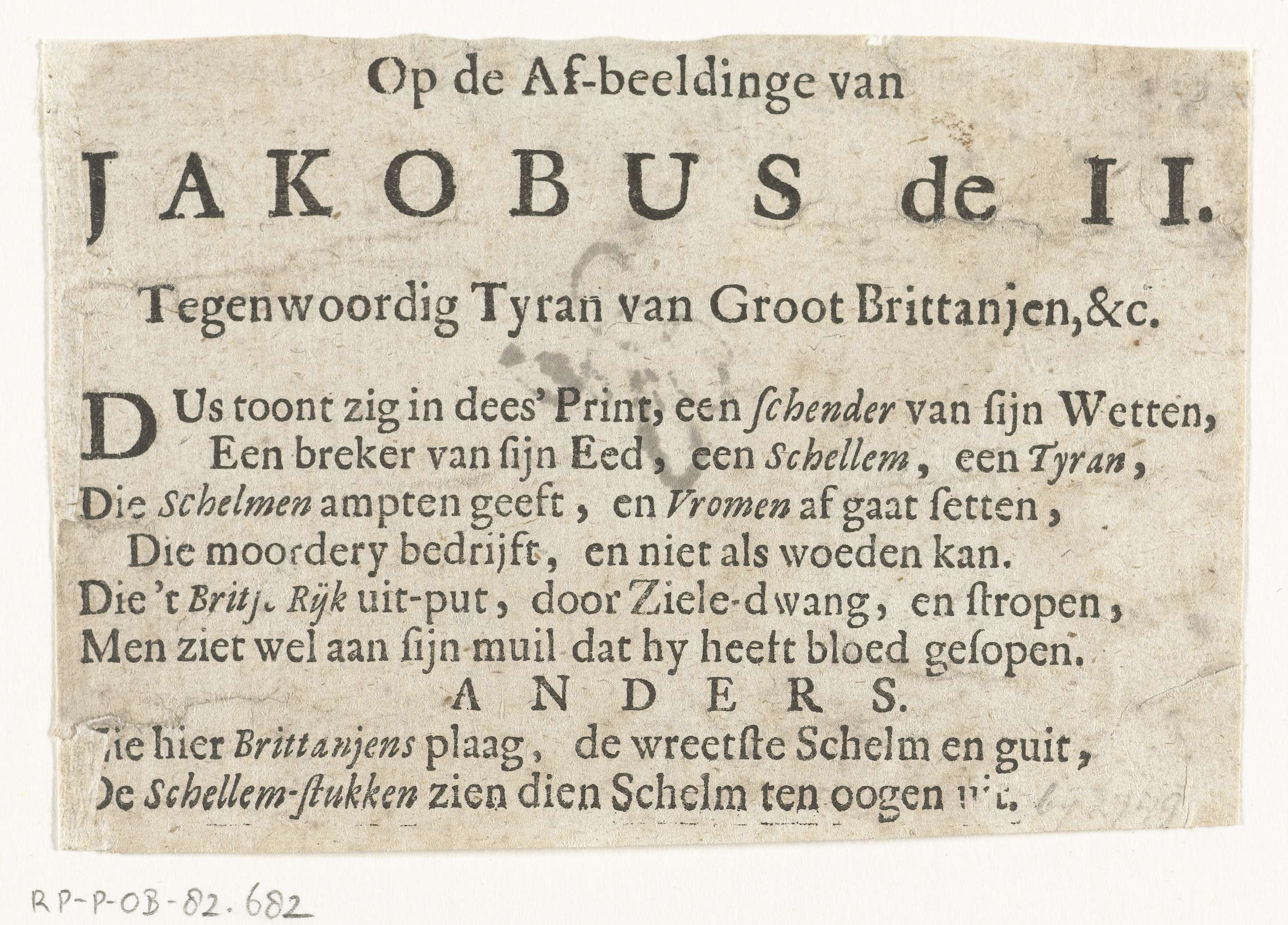 Vers op koning Jacobus II van Engeland, ca. 1688-1689