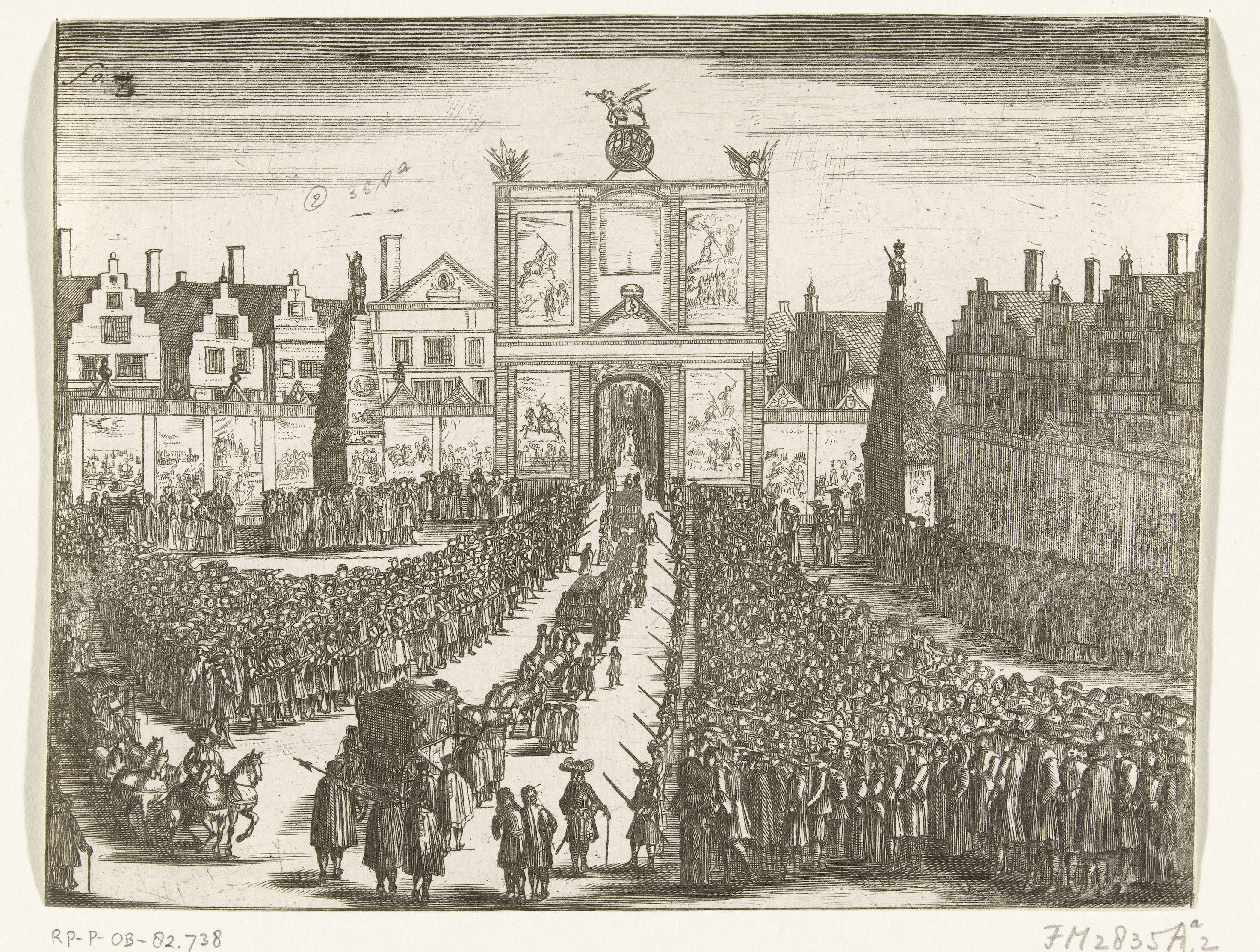 Erepoort opgericht voor de Hoogstraat te Den Haag, 1691