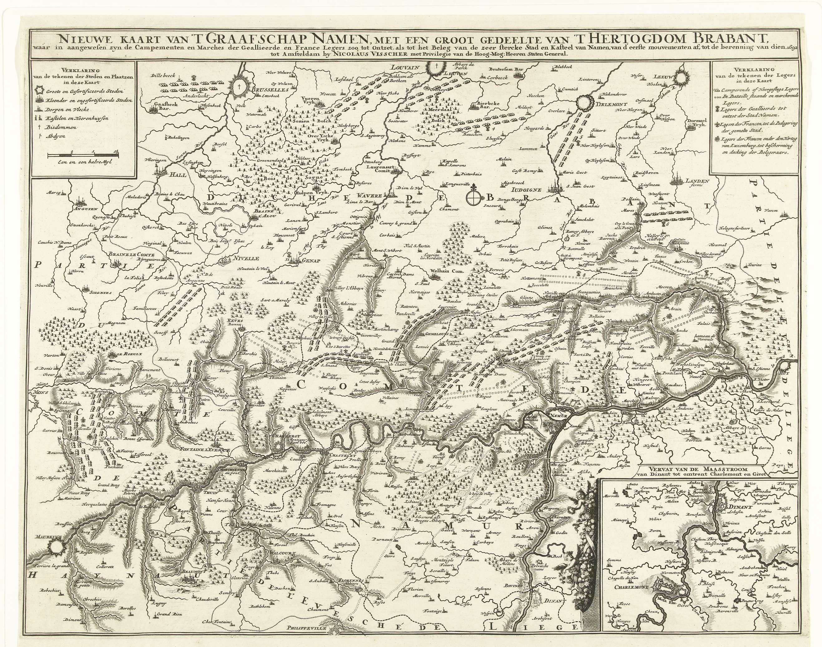 Kaart van het graafschap Namen met de posities van de Geallieerde en Franse legers, 1692