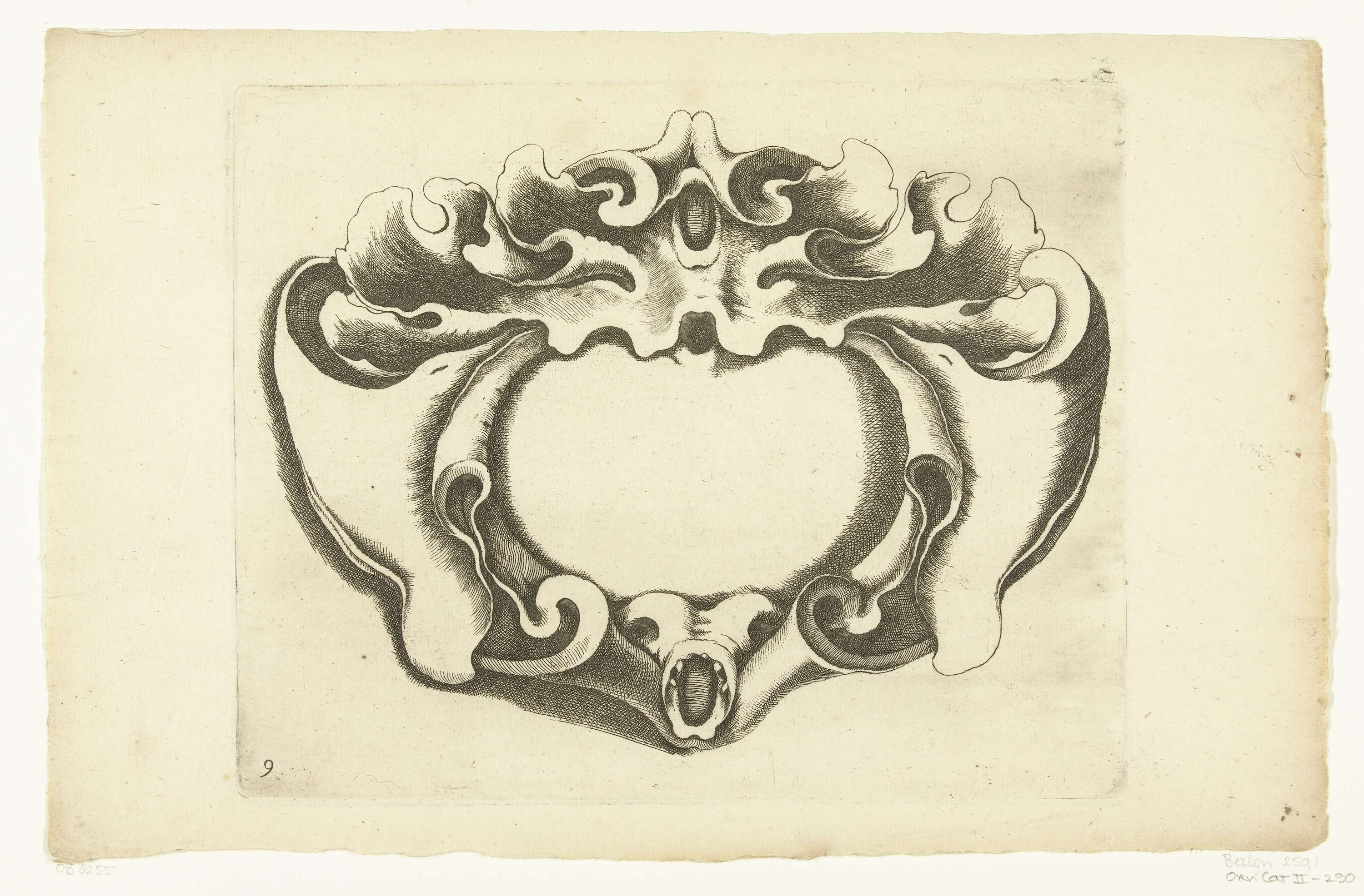 Onderaan een klein monsterhoofd met een ovale bek met tanden.