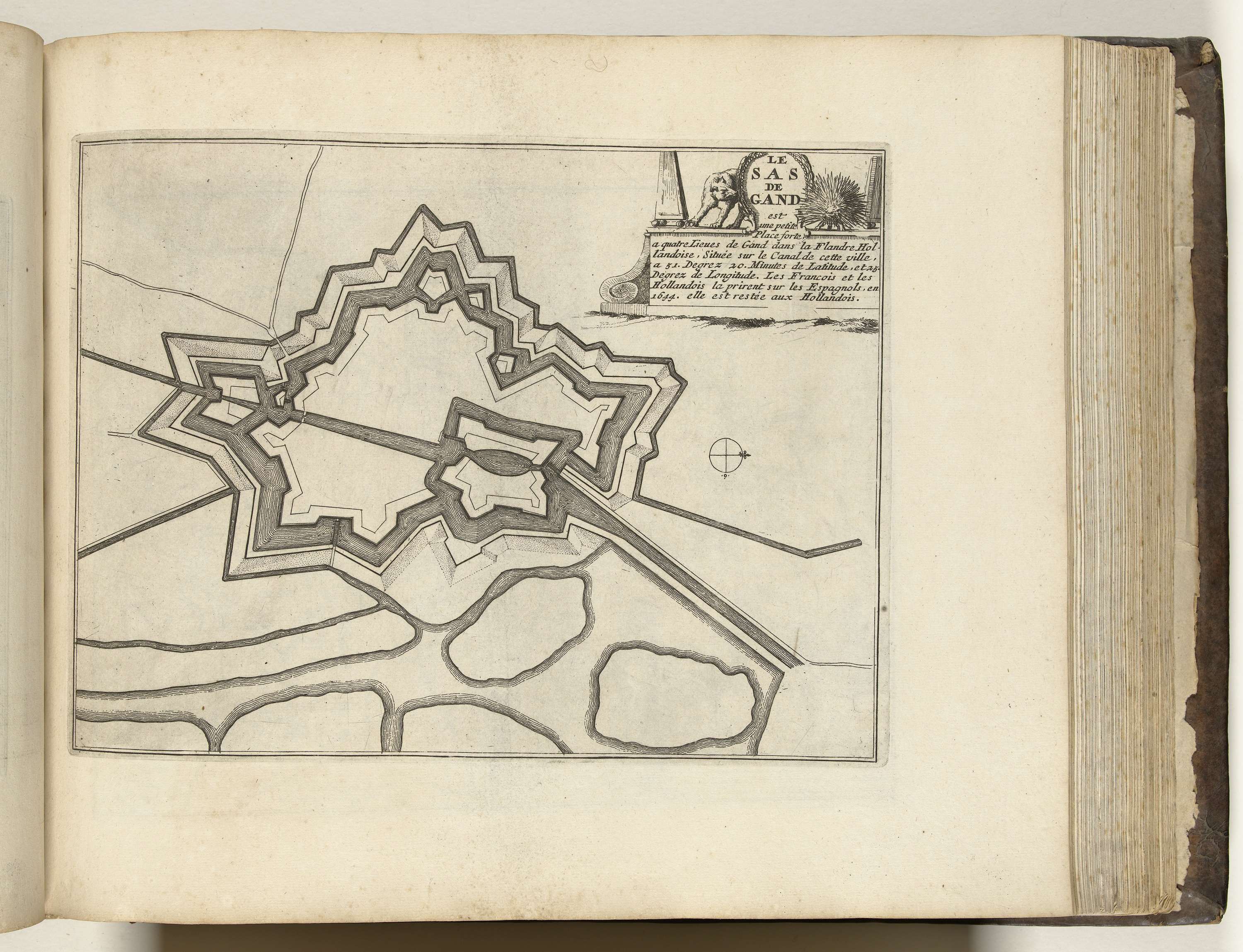 Plattegrond van de versterkingen om de Vlaamse stad Sas-van-Gent. Onderdeel van het vijfde deel (1696) van het prentwerk waarin gebundeld zijn de acht delen van Les forces de l'Europe uitgegeven tussen 1693-1697. Het prentwerk bestaat uit 175 platen met plannen (afkomstig van Sébastien Le Prestre, Seigneur de Vauban) van vermaarde sterke steden en vestingen in ...