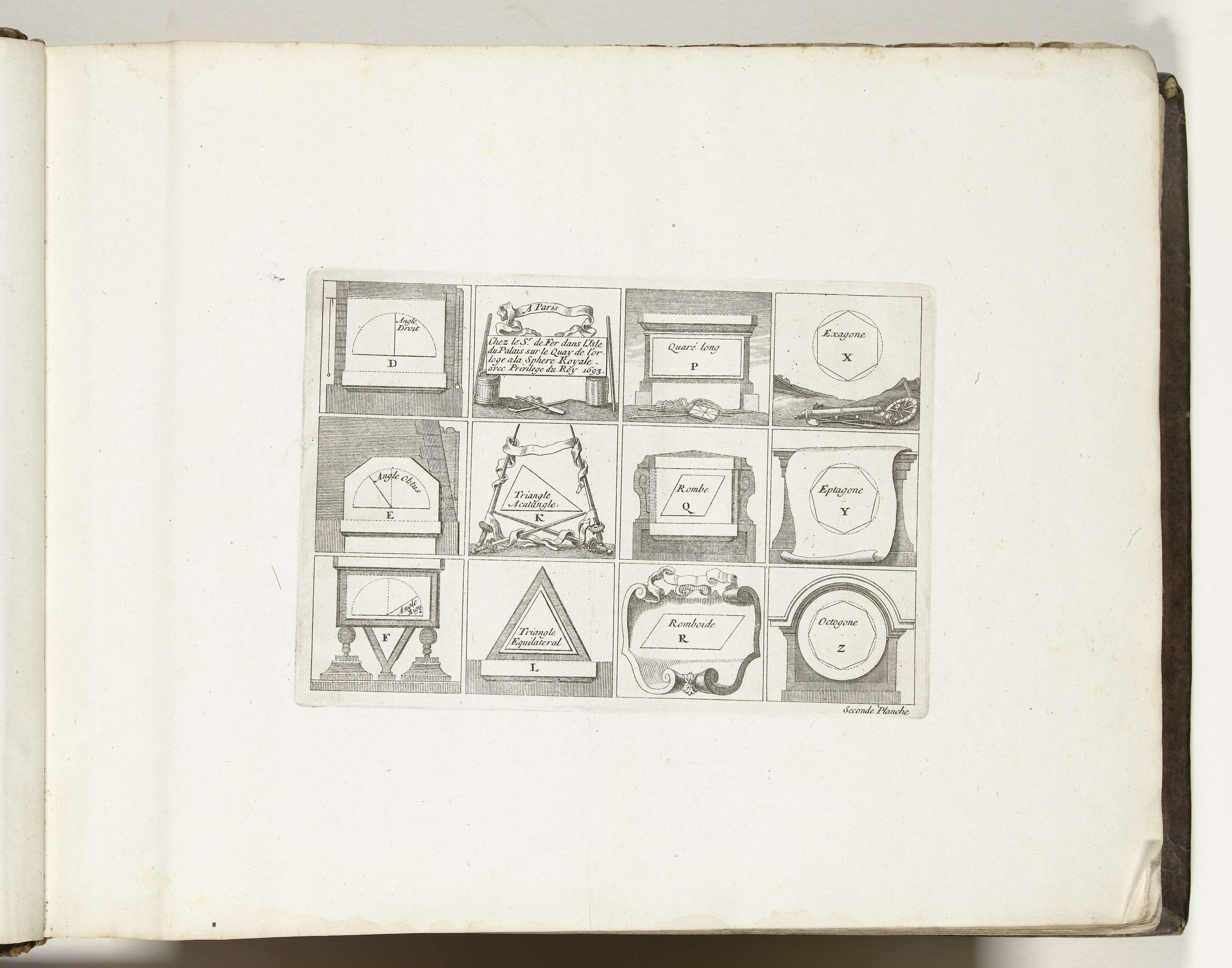 Tweede plaat met geometrische figuren toegepast in de vestingbouw. Onderdeel van het eerste deel (1693) van het prentwerk waarin gebundeld zijn de acht delen van Les forces de l'Europe uitgegeven tussen 1693-1697. Het prentwerk bestaat uit 175 platen met plannen (afkomstig van Sébastien Le Prestre, Seigneur de Vauban) van vermaarde sterke steden en vestingen in ...