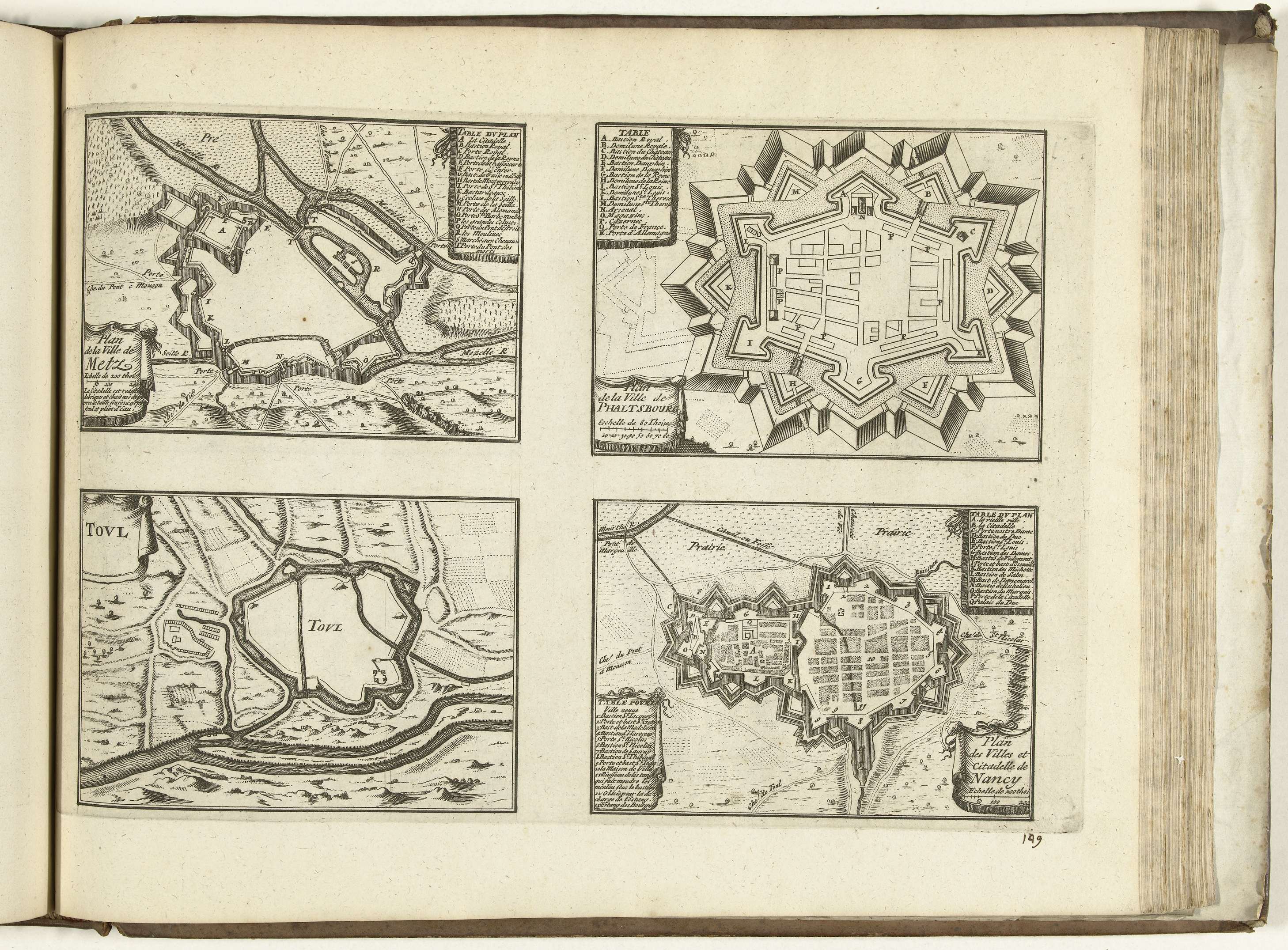 Plattegronden van Metz, Phalsbourg, Toul en Nancy, 1726