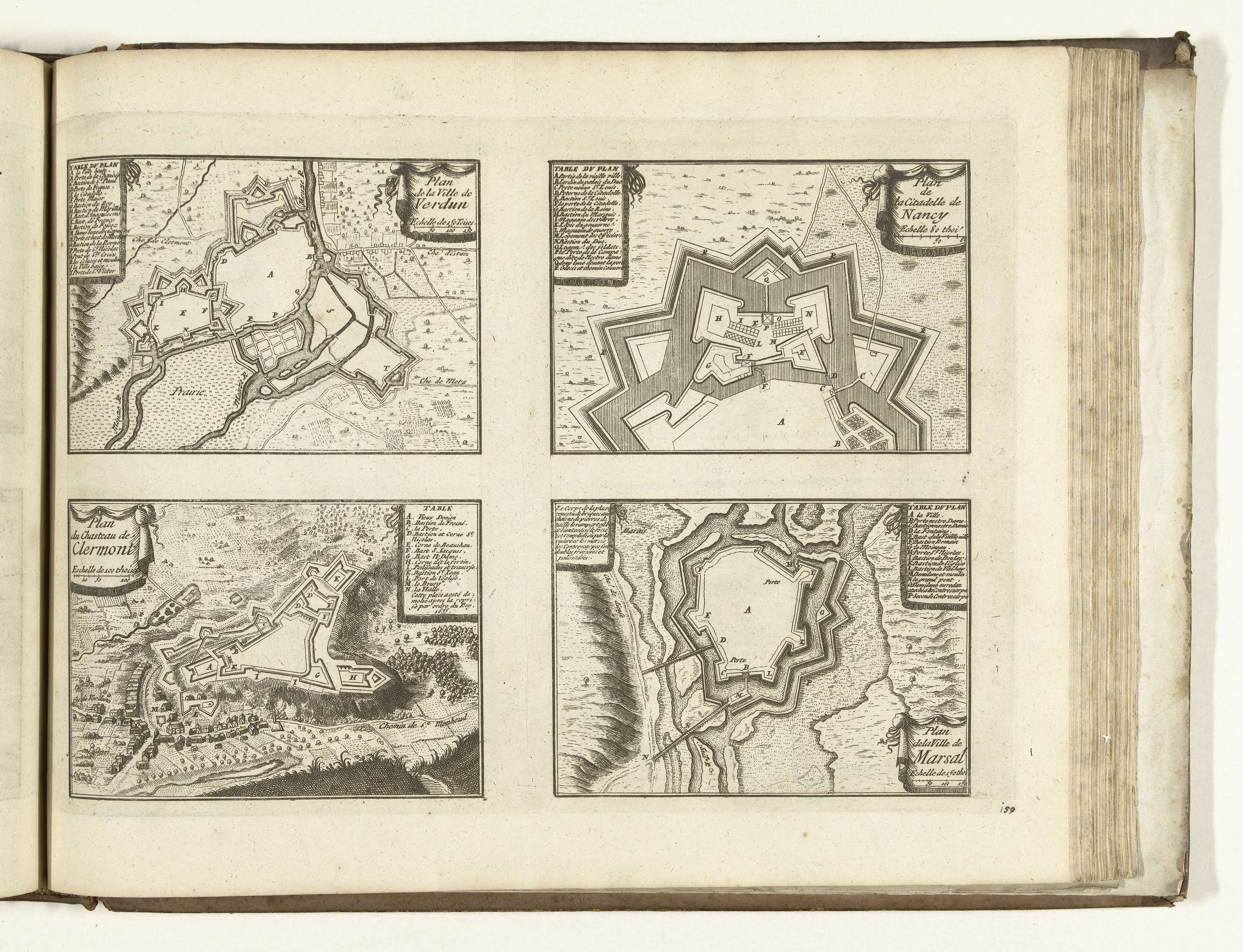 Plattegronden van Verdun, Nancy, Clermont-Ferrand en Marsal, 1726
