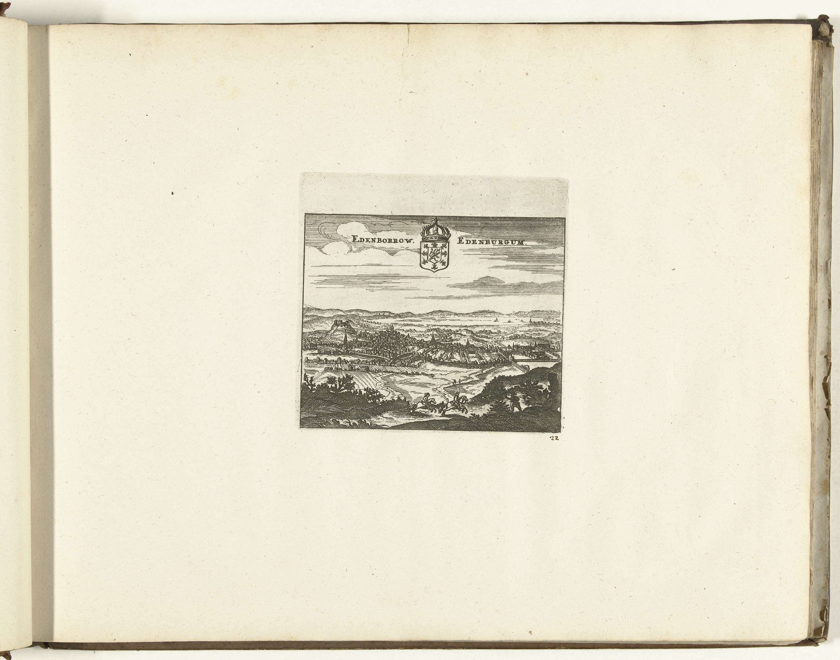 Gezicht op Edinburgh. Plaat nr. 22 in deel I van het prentwerk: Les Forces de l'Europe, Asie, Afrique et Amerique ... Comme aussi les Cartes des Côtes de France et d'Espagne uit 1726, dit eerste deel met 238 met de hand genummerde platen van vermaarde sterke steden en vestingen in het kader van de Spaanse ...