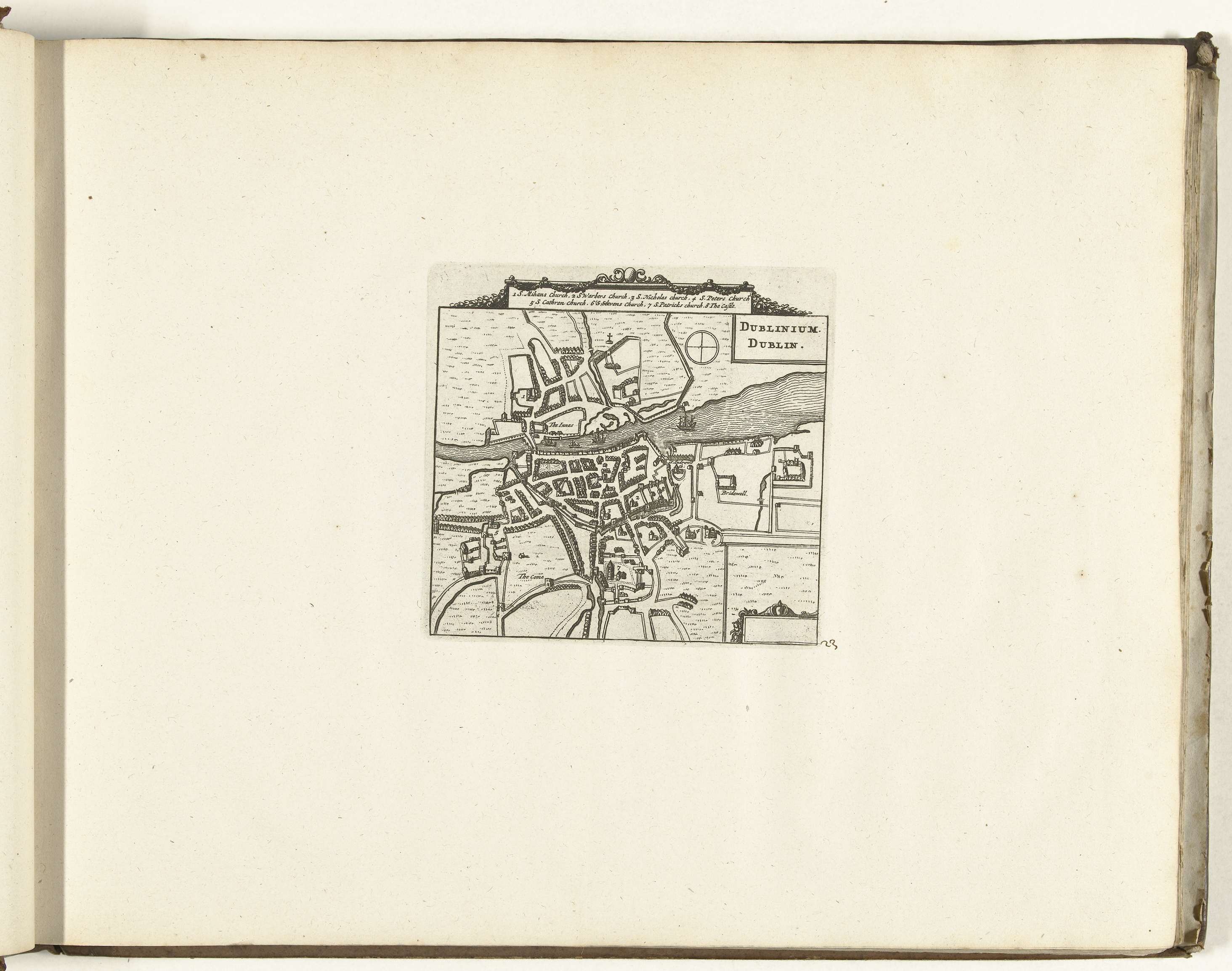 Plattegrond van Dublin. Plaat nr. 23 in deel I van het prentwerk: Les Forces de l'Europe, Asie, Afrique et Amerique ... Comme aussi les Cartes des Côtes de France et d'Espagne uit 1726, dit eerste deel met 238 met de hand genummerde platen van vermaarde sterke steden en vestingen in het kader van de Spaanse ...